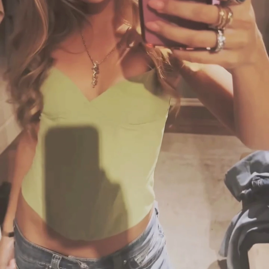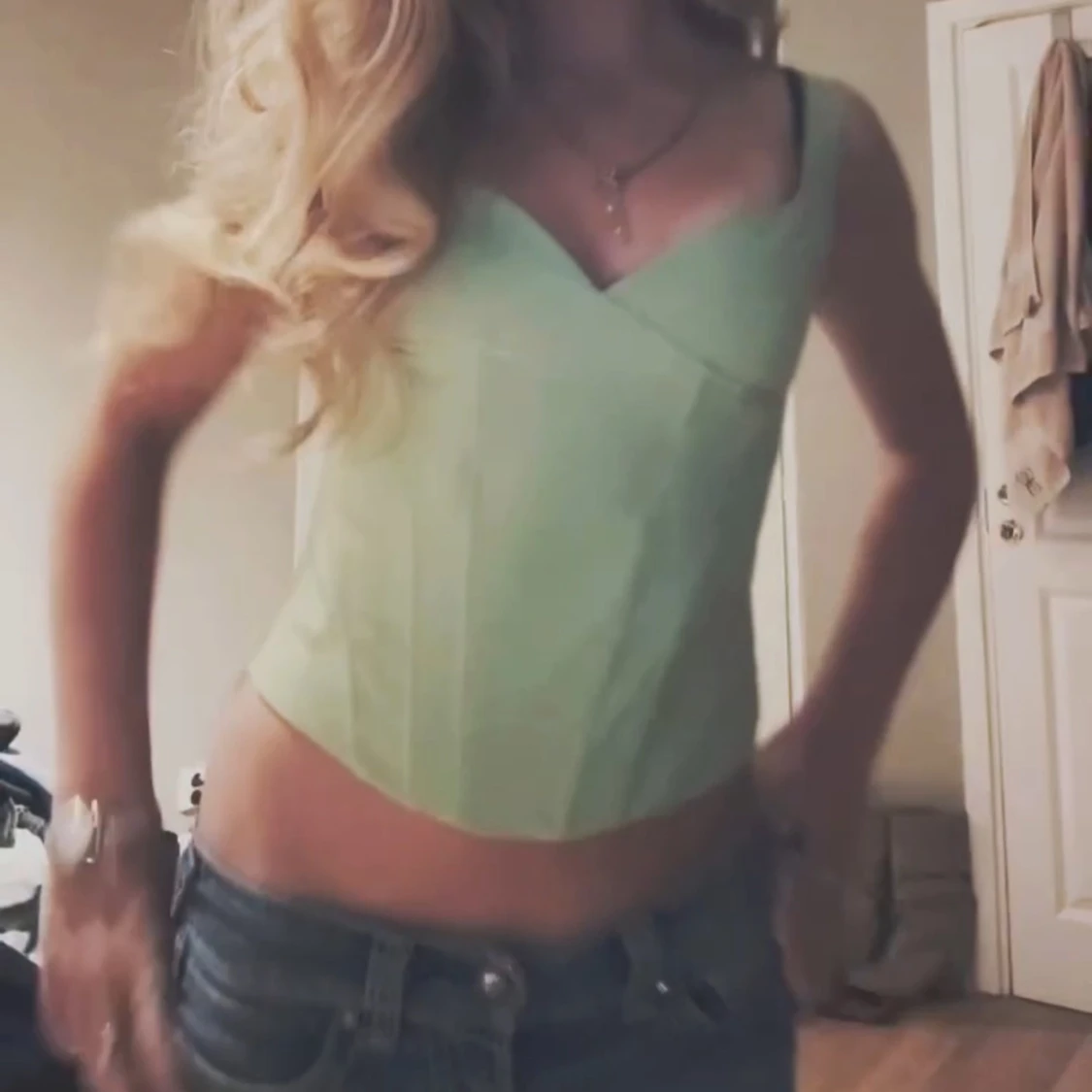 Snygg grön korsettliknande topp med smala axelband och v-ringad design. Perfekt för att ge en stilren och trendig look. Passar bra till jeans eller kjol för en chic outfit.