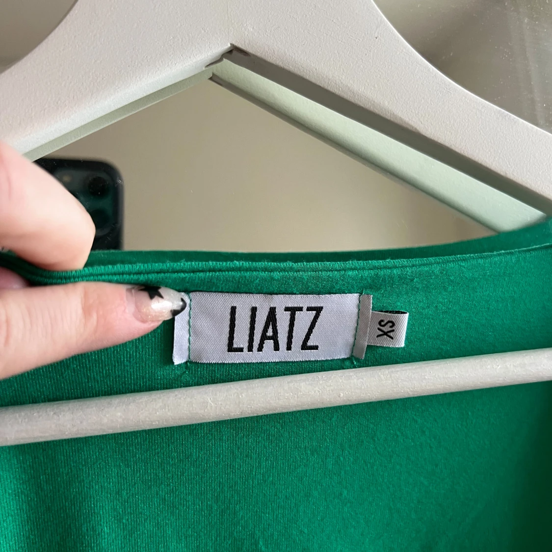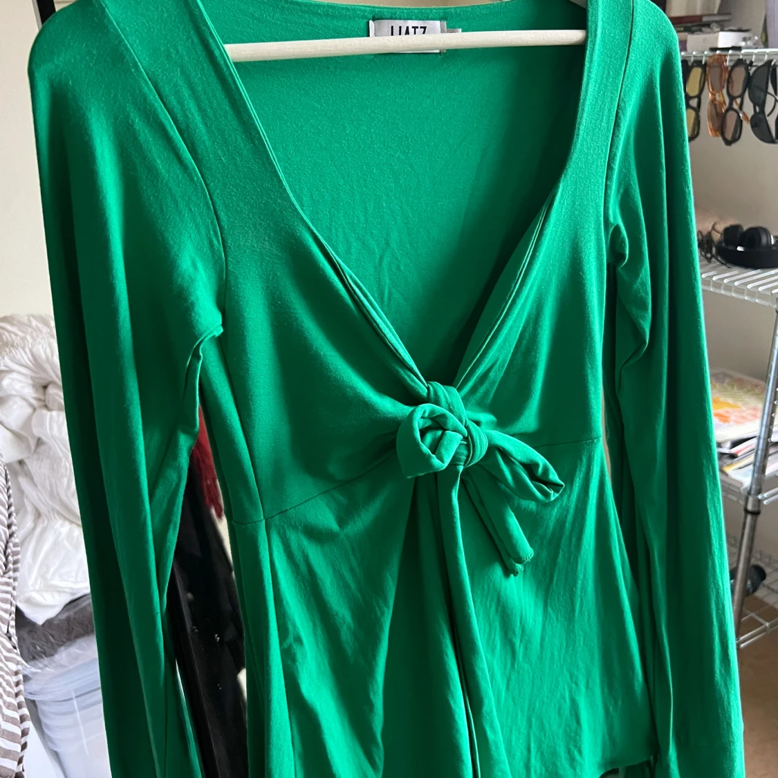 Säljer en snygg grön långärmad topp från LIATZ. Toppen har en knytning framtill och en djup v-ringning som ger en stilren look. Perfekt för att piffa upp garderoben med lite färg!