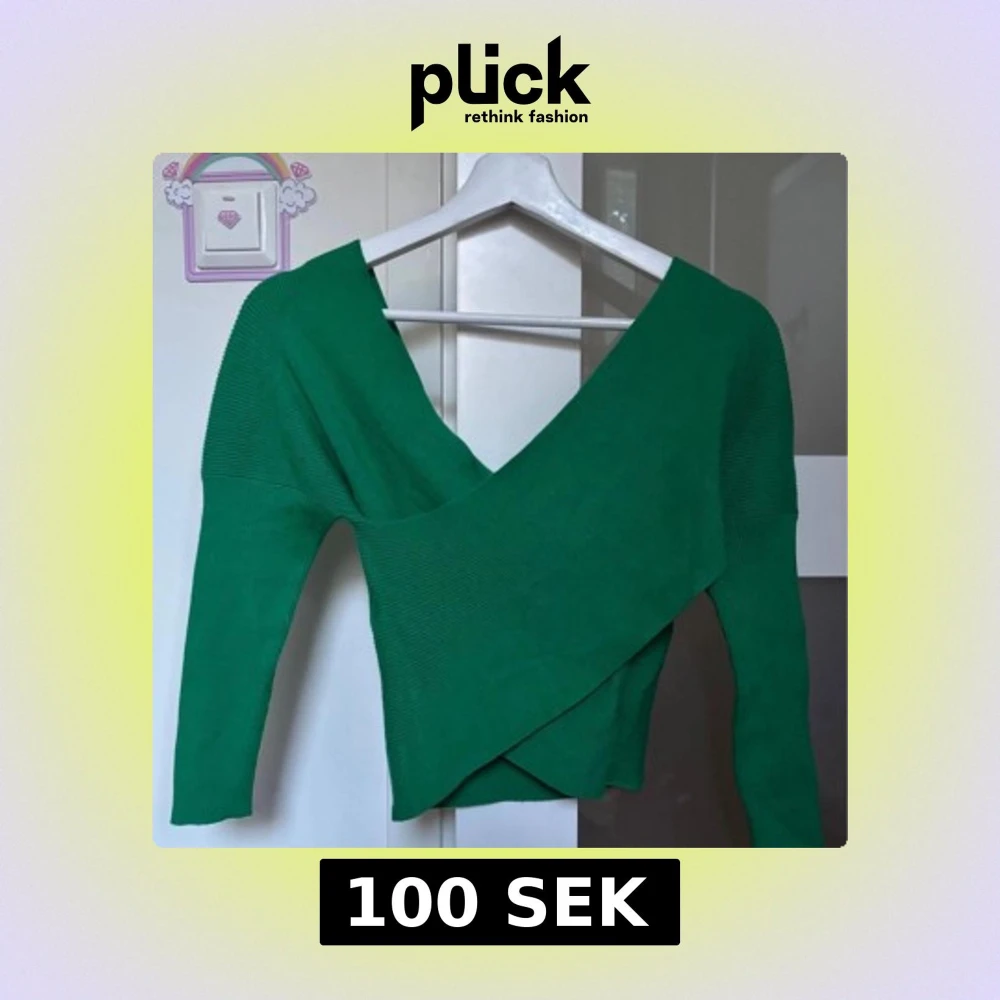 Snygg grön omlottopp från MNG i storlek M. Toppen har lång ärm, ribbad struktur och en djup v-ringning framtill. Modellen är croppad och sitter tajt över kroppen, perfekt för en trendig look.