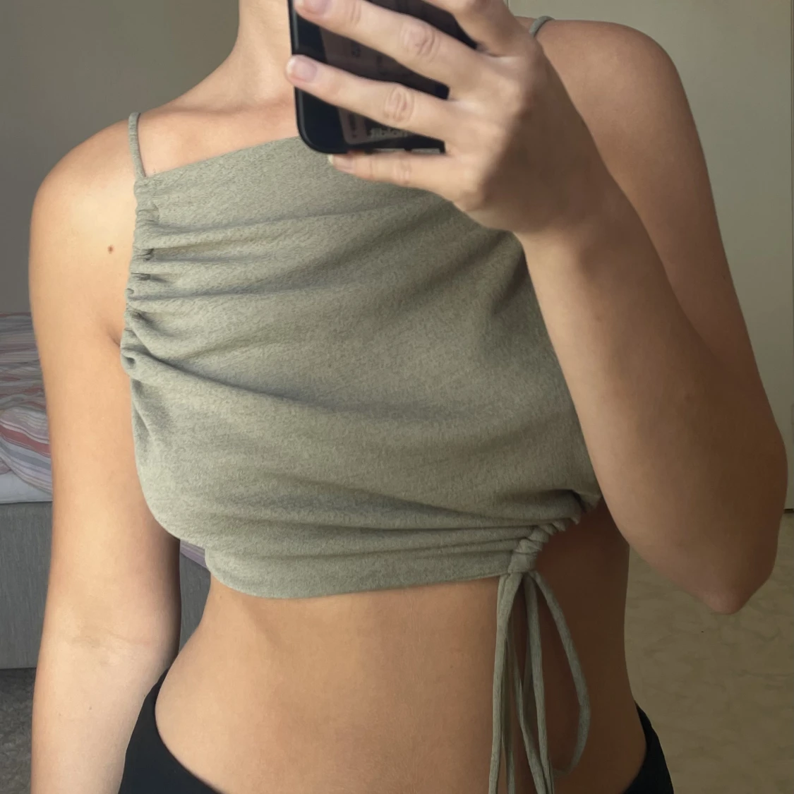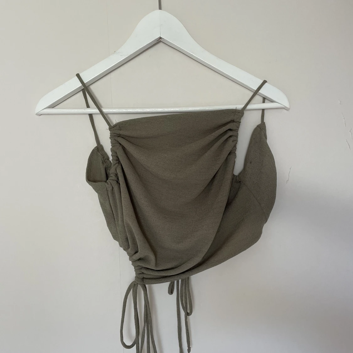 Grön festtopp från Pull & Bear. Öppen rygg med band som man kan justera, även band där fram för att justera hur tajt den ska sitta. Använd ett fåtal gånger och i bra skick!