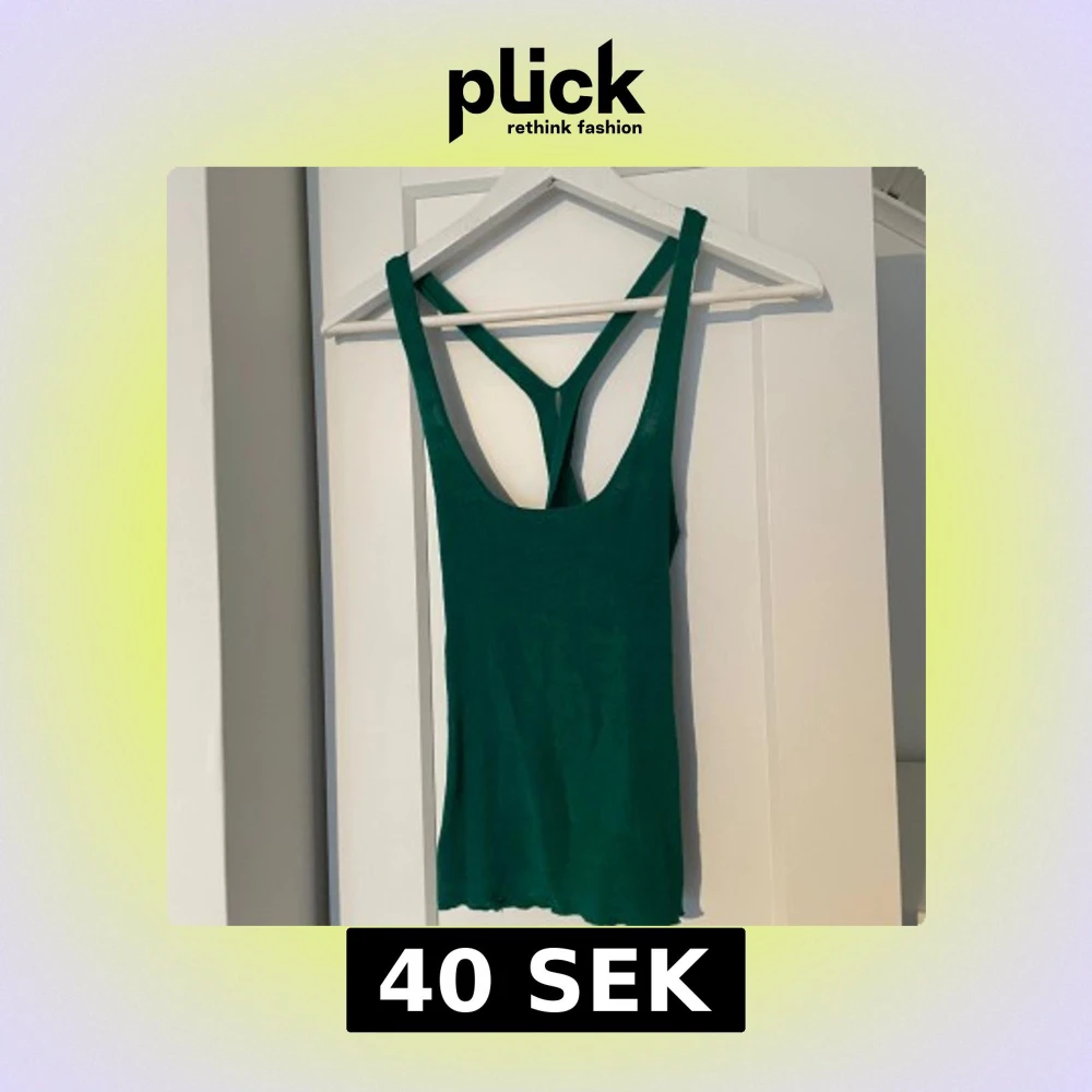 Snygg grön ribbad linnetopp med smala axelband och korsad ryggdesign. Perfekt för varma dagar eller som lager under en jacka. Den stretchiga passformen gör den bekväm och stilren. Storlek S/M