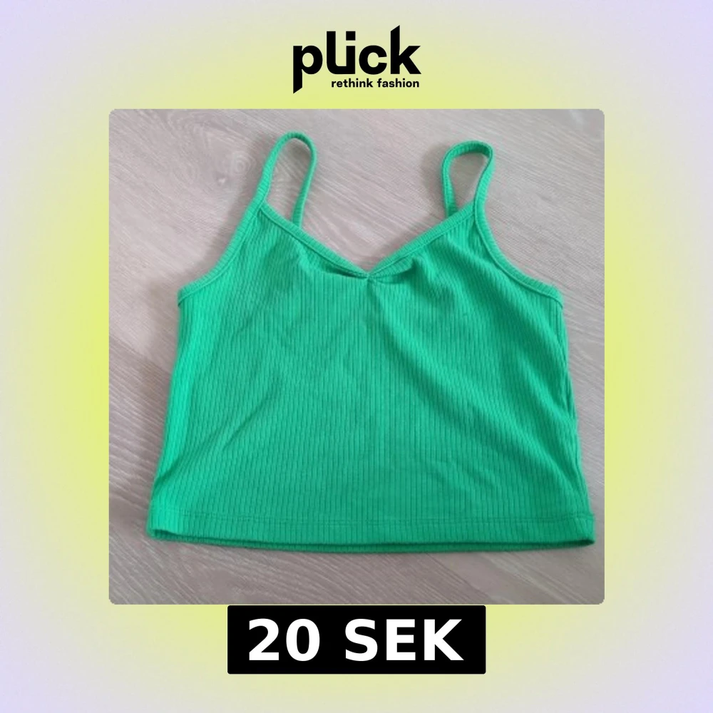 Snygg grön linnetopp med smala axelband och ribbad struktur. Toppen är croppad och har en enkel, stilren design som passar perfekt till jeans eller kjol. Perfekt för varma dagar och somriga outfits.