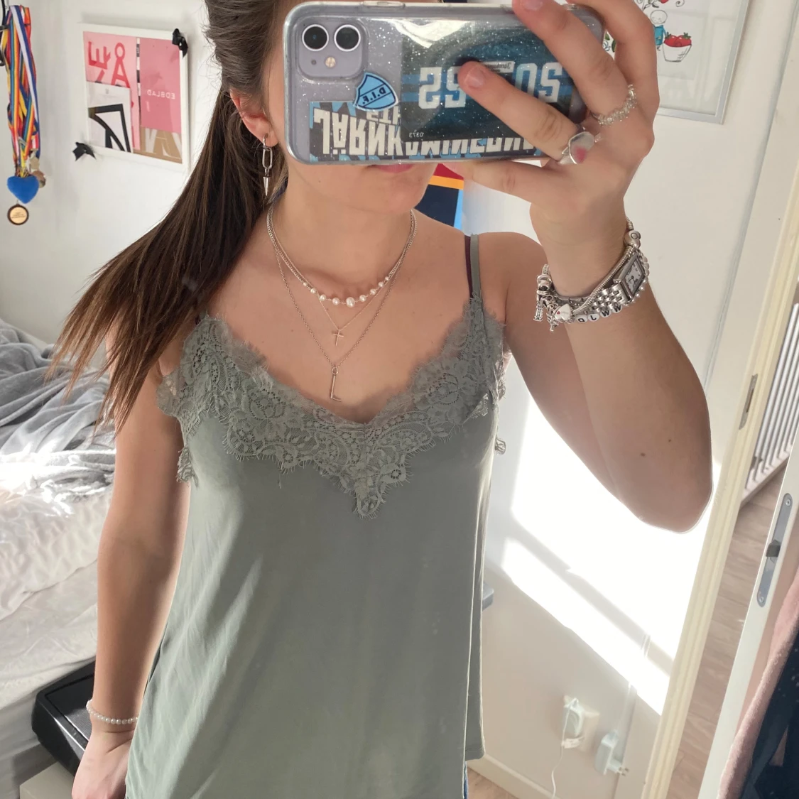 Jätte söt grön spets linne, super snyggt till ett par jeans och kofta. Jätte skön och perfekt till fest eller vardag.
