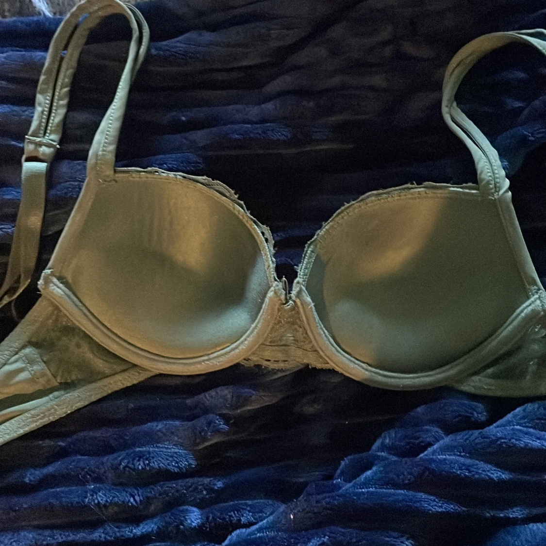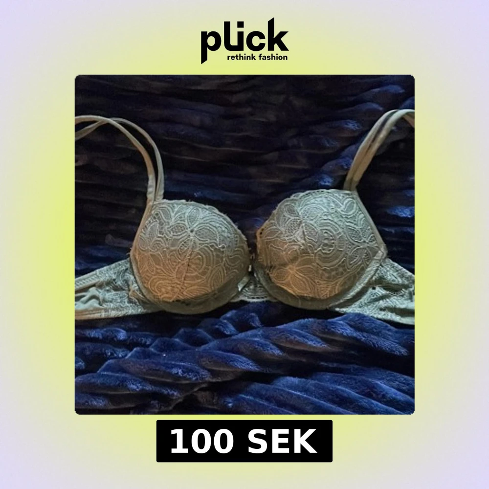 Snygg grön bh med vadderade kupor och vackert spetsmönster framtill. Axelbanden är justerbara och toppen har en feminin, figurnära passform. Perfekt för att lyfta din outfit med en touch av elegans.