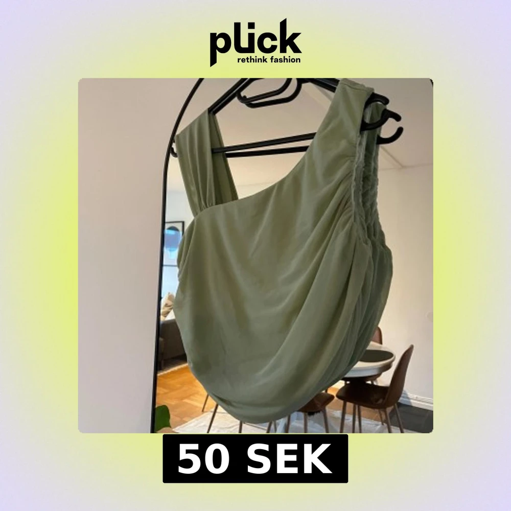 Croppad ljusgrön fin topp i mesh tyg med två olika ärmar och struktur på ena sidan, endast testad i väldigt fint skick. Storlek l men skulle säga att den är lite mer m/l. 💕