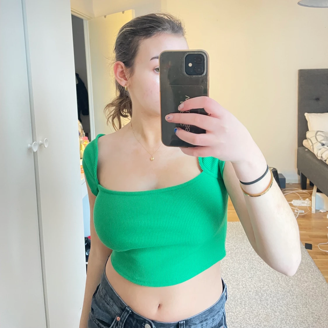 Jättesöt grön topp från shein, endast använd en gång då den nu är för liten! Jättefin att ha till allt möjligt😍