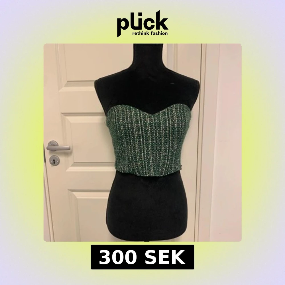 Säljer en snygg grön tubtopp från Zara med vitmelerat mönster. Toppen har en strukturerad, något ribbad yta och är axelbandslös med en figurnära passform. Perfekt för att skapa en trendig look.
