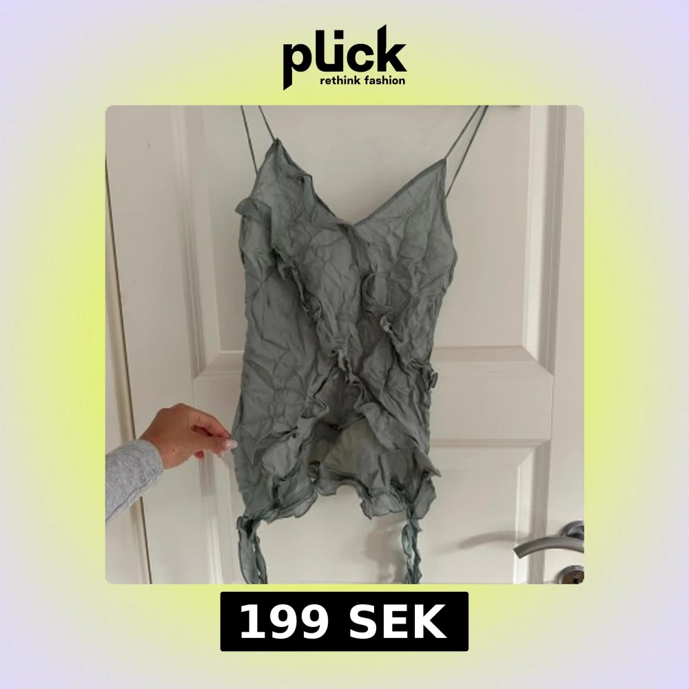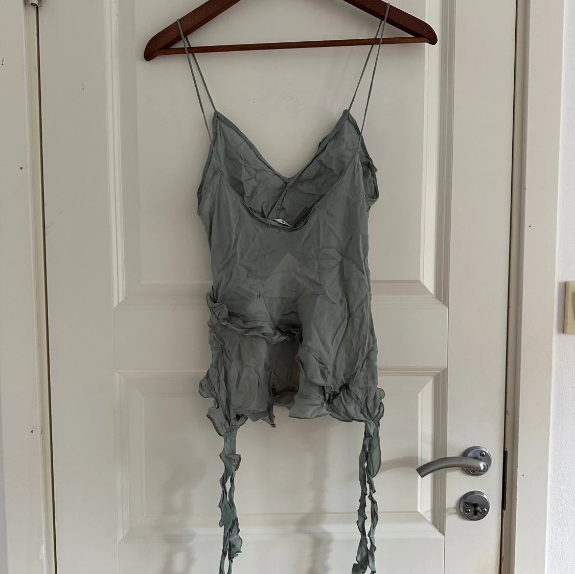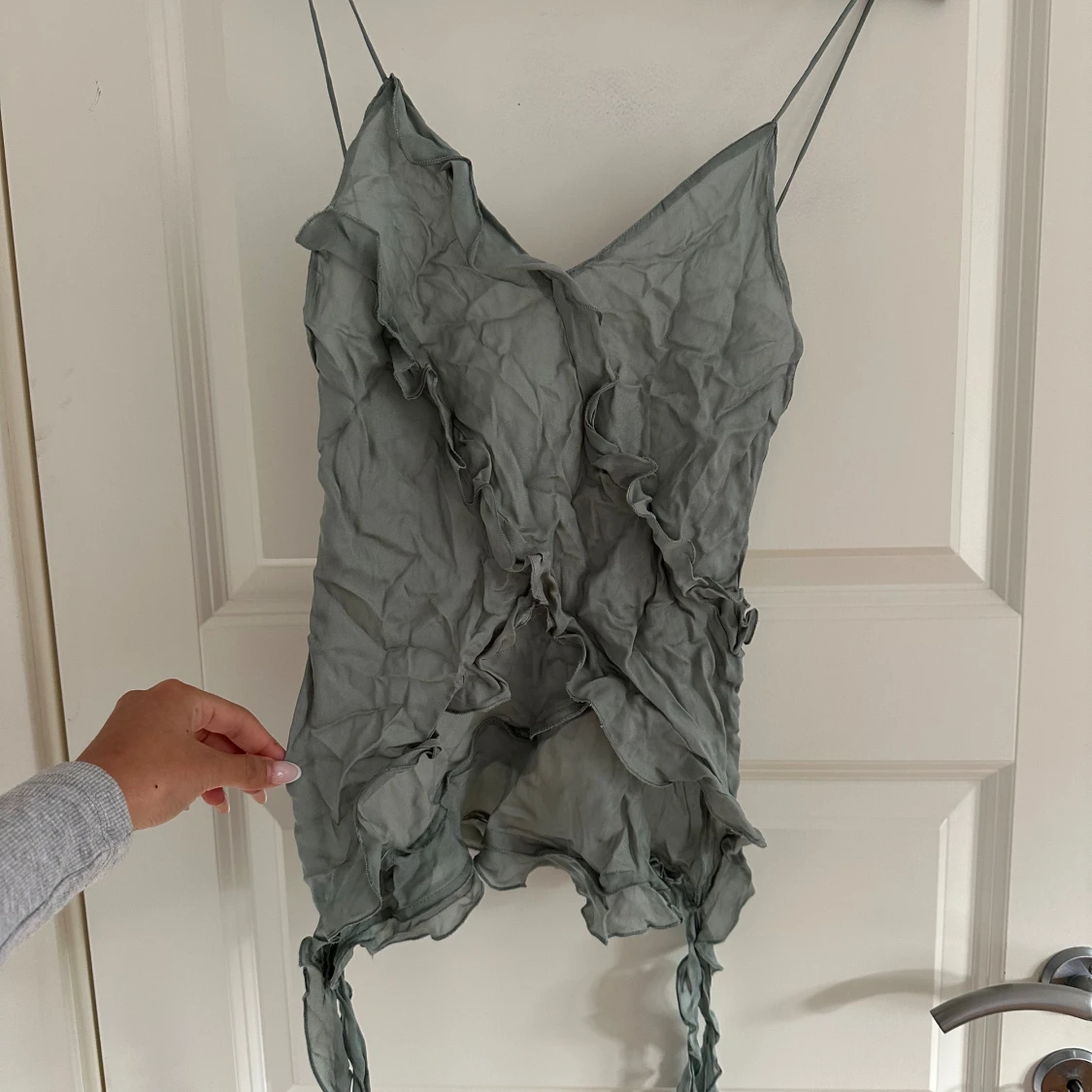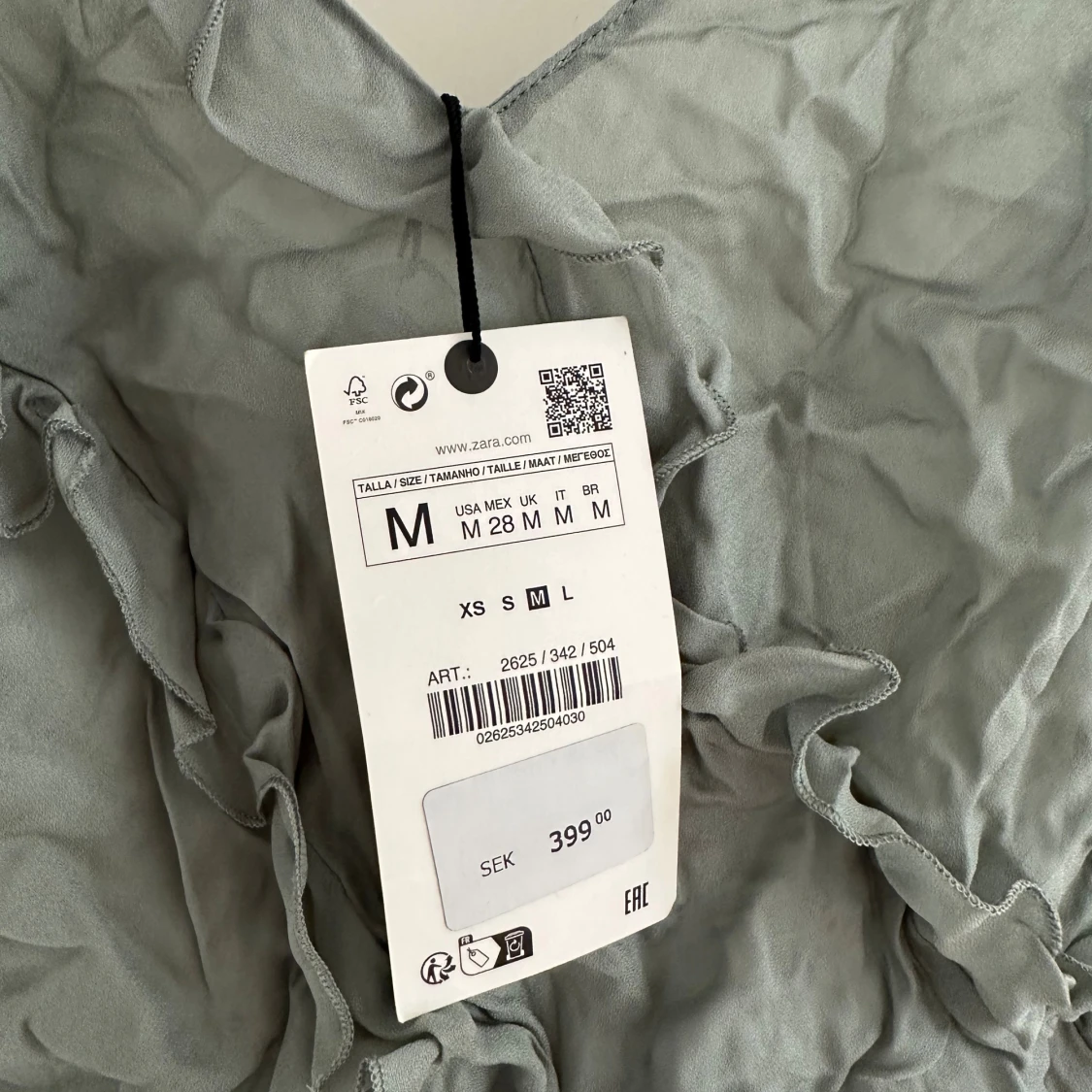 Supersnygg grön linnetopp från Zara med tunna axelband och volangdetaljer framtill. Helt oanvänd 💚