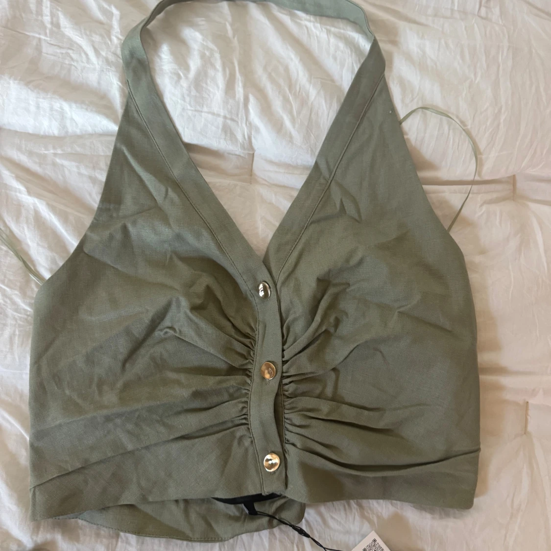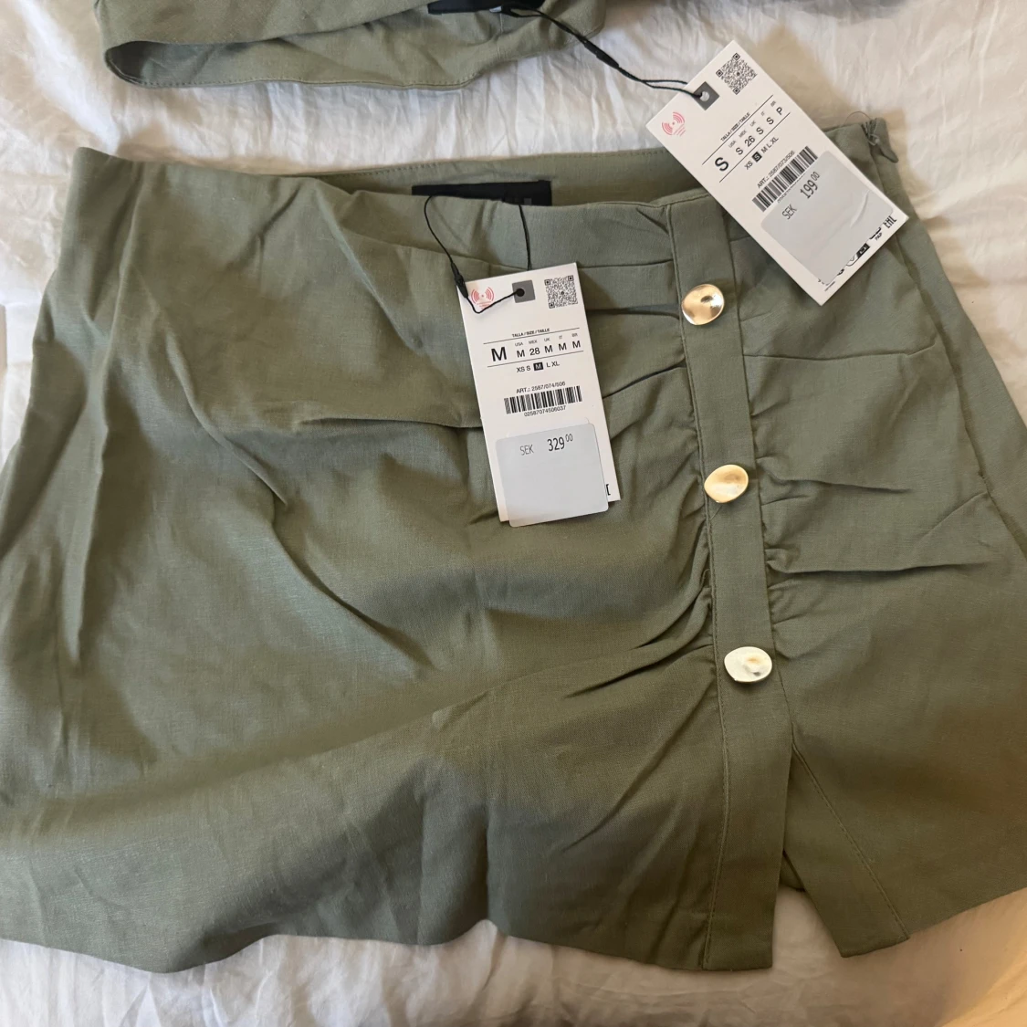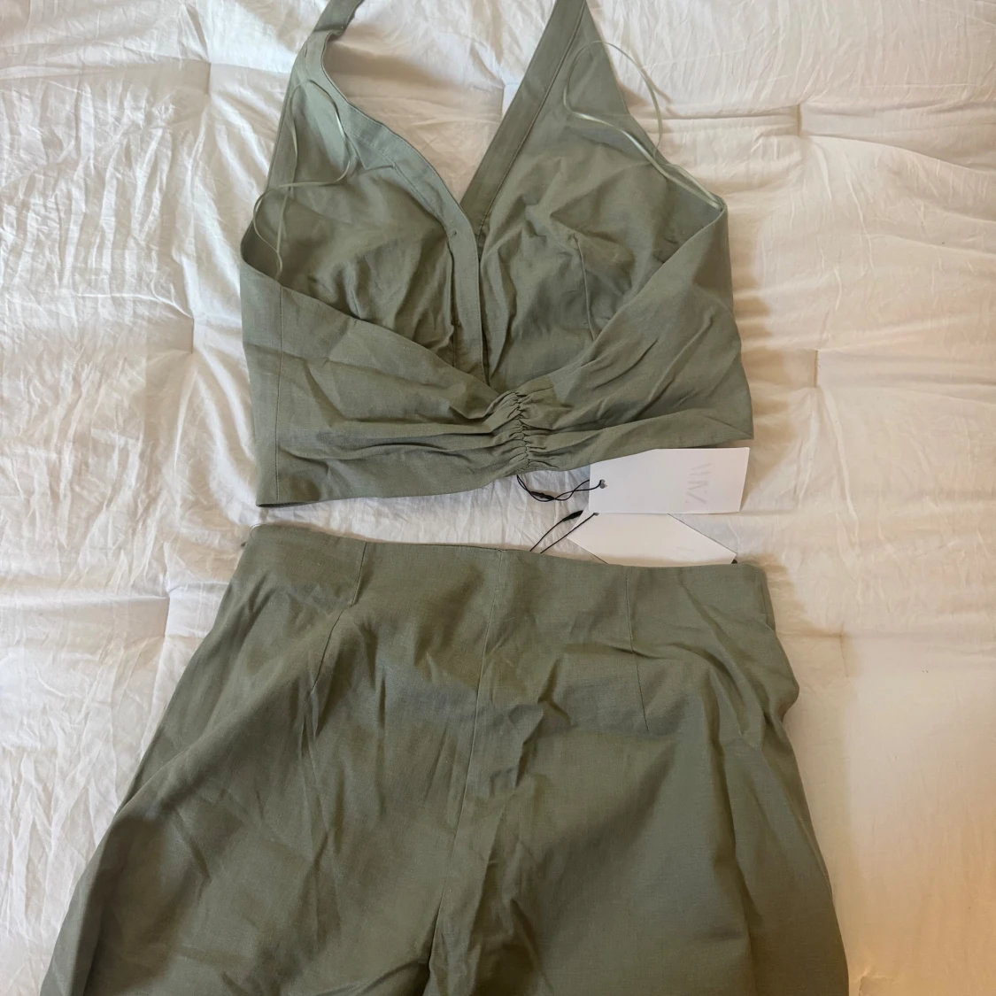 Ett grönt Zara set aldrig använd med prislappen kvar. En skort och en topp med öppen rygg.