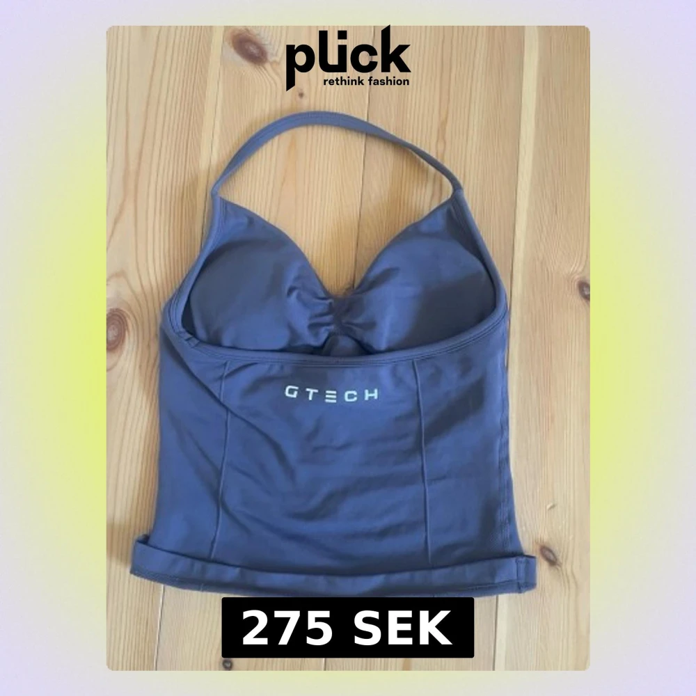 Jättefin Halter Top från Gtech med en vacker öppen rygg som sitter jättefint på kroppen. Säljer då den ej passar mig, i princip oanvänd💜