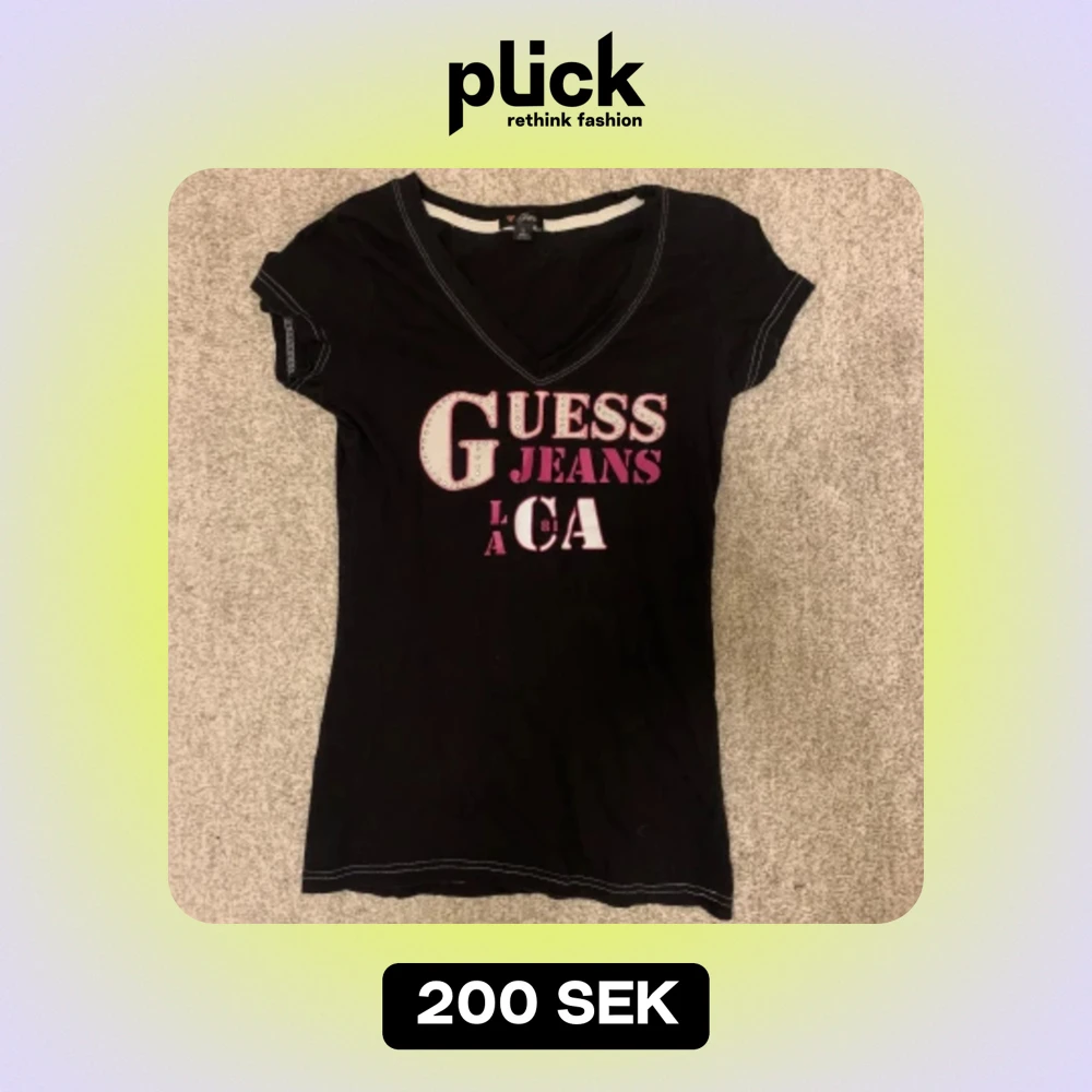 skit snygg guess t shirt, med små nitar och rosa text, hör av dig vid frågor