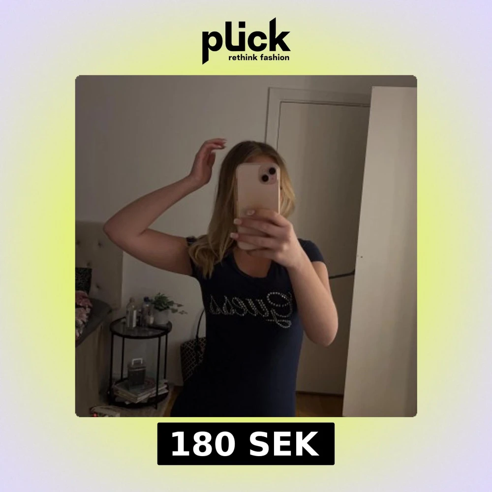 Snygg mörkblå t-shirt med glittrig text. T-shirten har korta ärmar och en rund halsringning.🥰🥰