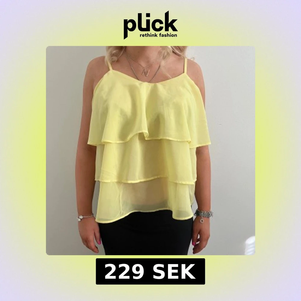 Gul topp storlek S men passar XSđ Har en liten flĂ€ck men knappt synlig! Annars bra skick, 229kr