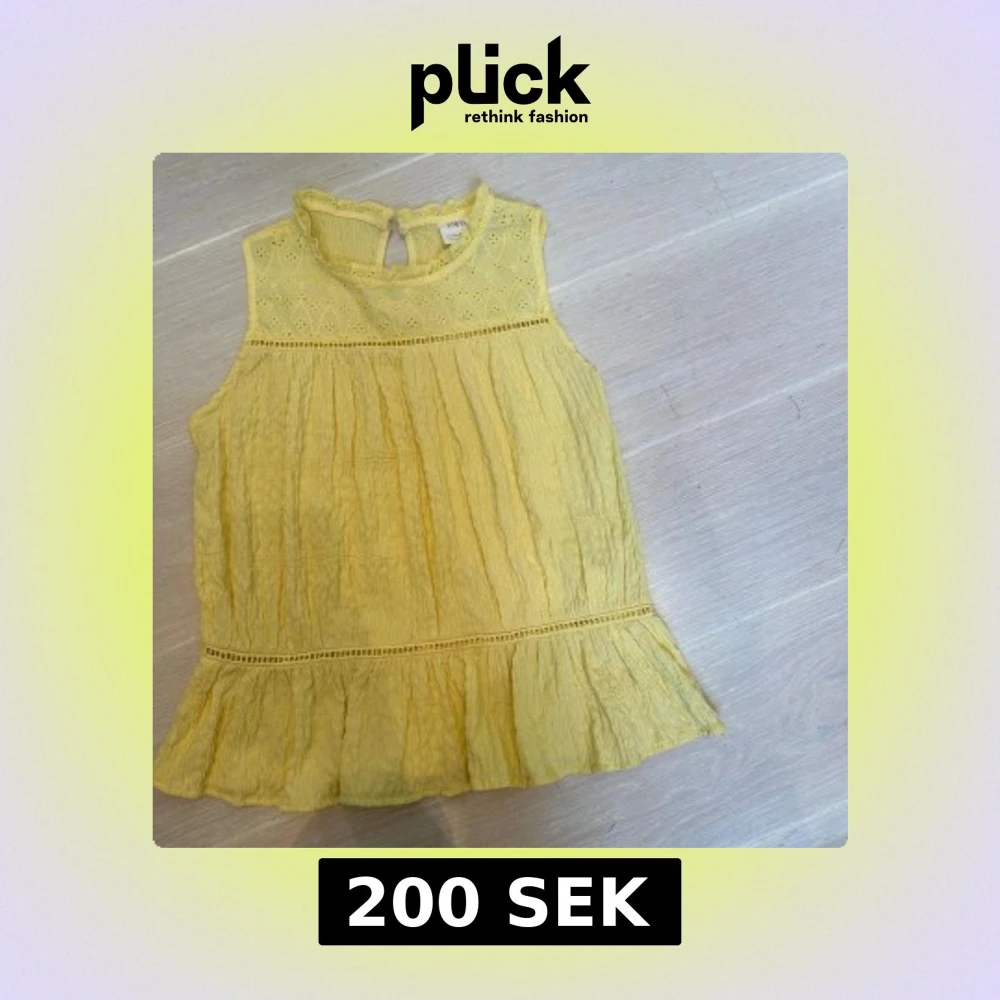 Superfin gul blus från Zara med broderade detaljer upptill och volang nertill. Ärmlös modell med rund hals och knapp i nacken.