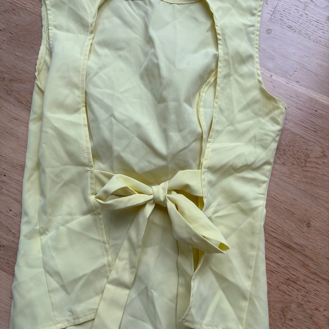 Superfin ljusgul ärmlös linnetopp med figurnära passform och snygg knytning i ryggen. Toppen har en enkel, stilren design med rundad halsringning och slät yta. Perfekt att styla med jeans eller kjol för en fräsch look.