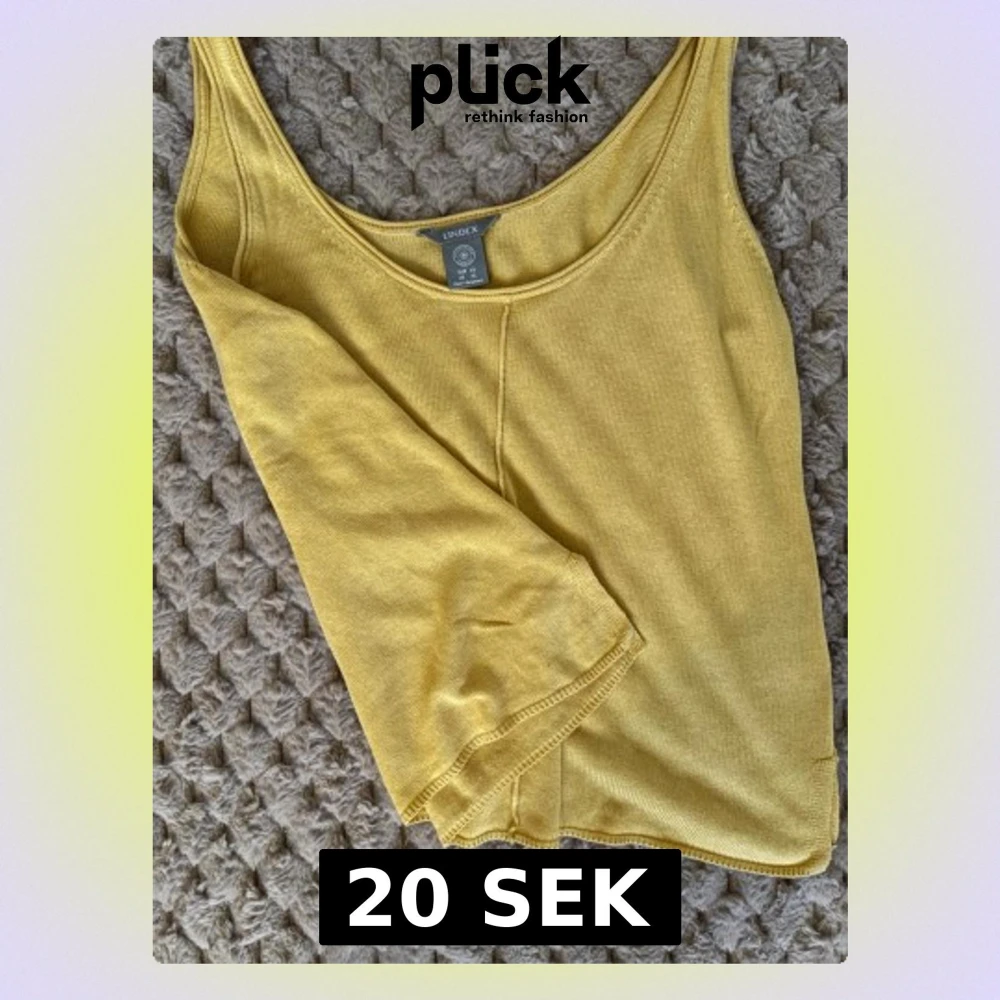 Säljer en gul linnetopp från Lindex i storlek XS. Toppen har en enkel och stilren design med rundad halsringning och ärmlös modell. Materialet är mjukt och bekvämt, perfekt för varma dagar. Passar dig som gillar minimalistisk stil och vill ha en färgklick i garderoben.