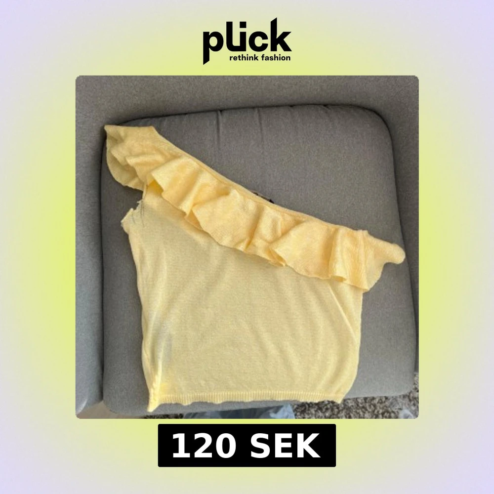 Snygg gul oneshoulder topp från Mango med glittrigt tyg. Använd några få gånger, storlek S🫶🏼