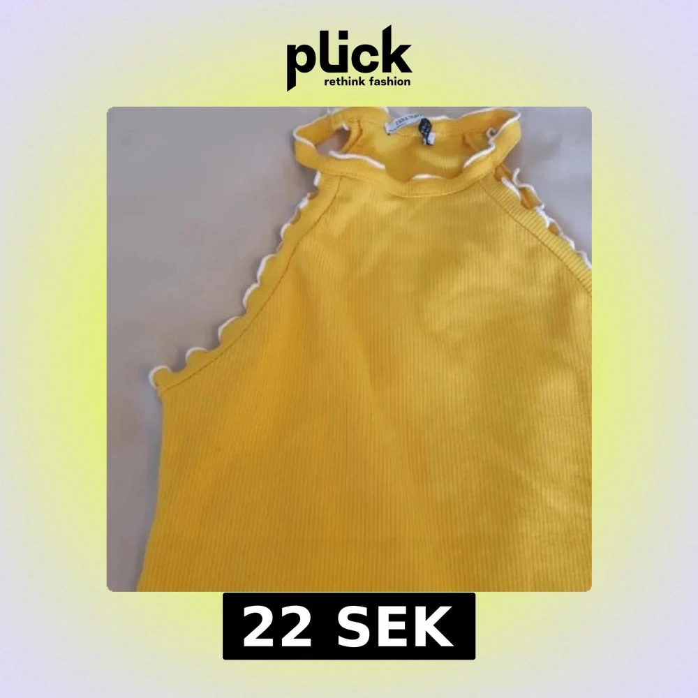 Superfin gul ribbad linnetopp från Zara Trafaluc med vita vågiga kanter längs halsringning och ärmhål. Hög hals och ärmlös modell, perfekt för soliga dagar. 🌟 Eventuellt en liten liten fläck under ena armhålan, som säkert går bort med lite fläckborttagning (se nära på bild 2)