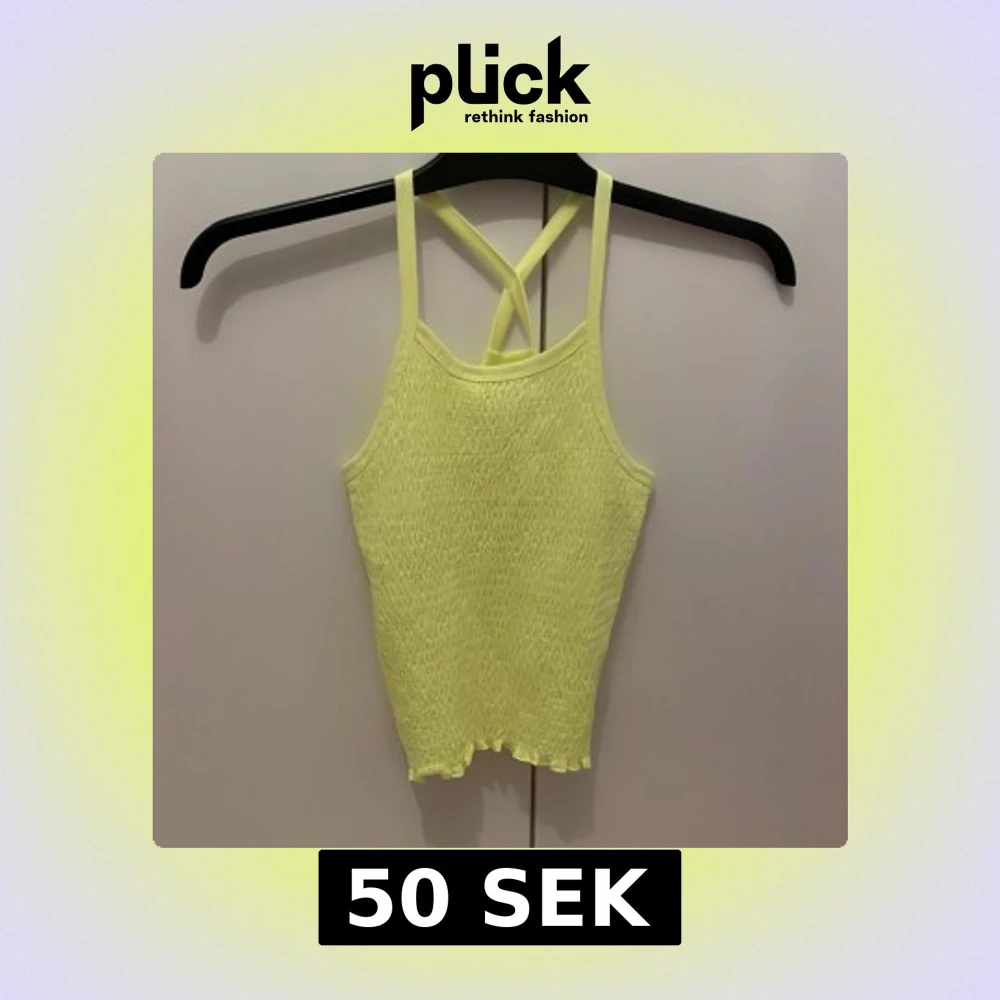 Supersöt ljusgul linnetopp från Lindex med smockad framsida och smala axelband som korsas i ryggen. Toppen har vågig kant nertill och är perfekt för varma dagar. Mjuk och stretchig känsla, passar dig som gillar färg och enkel stil. Använd få gånger ❣️