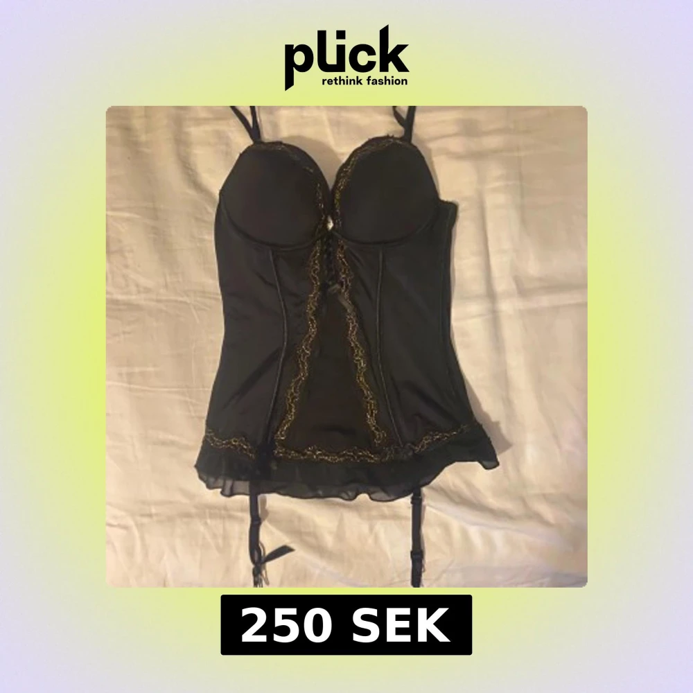 Svart korsett med rosetter och guldiga detaljer. köptes på Vinted men passade inte på mig så säljer därför den vidare med samma pris. Skriv vid frågor eller för bättre bild på korsetten❤️