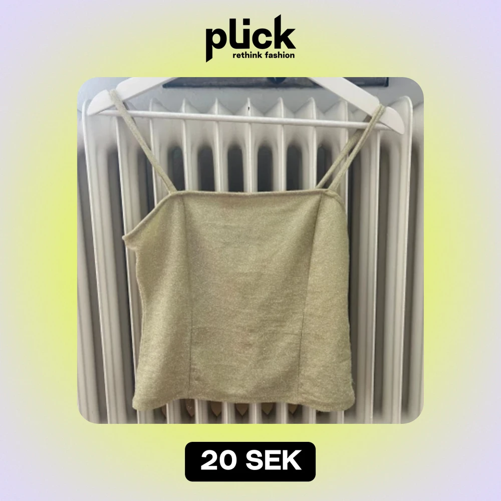 En elegant guld glittrig linnetopp med smala axelband. Toppen har en enkel och stilren design, perfekt för festliga tillfällen.