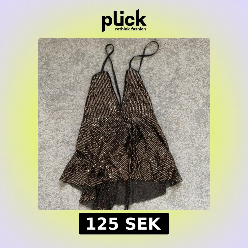 Supersnygg svart topp med tunna axelband och massor av glittriga paljetter. Aldrig anvĂ€ndđȘ©