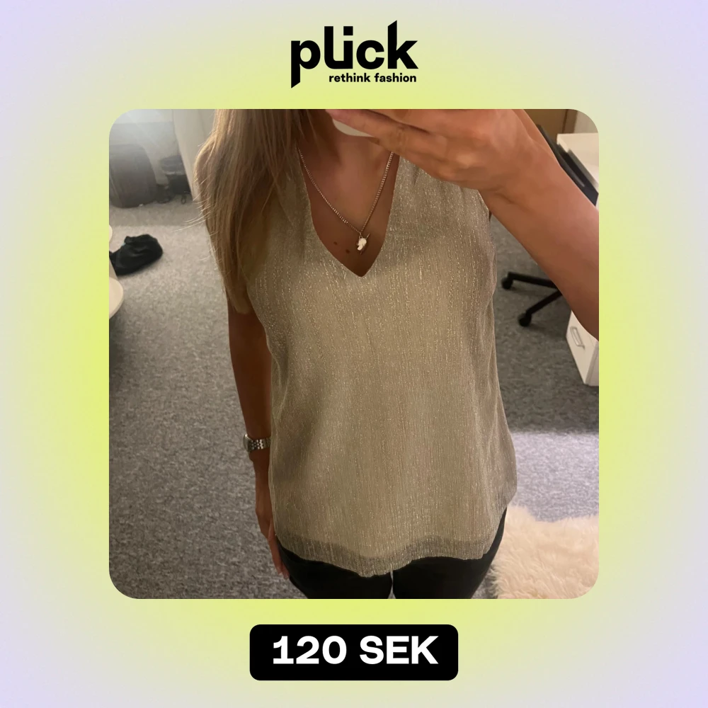 Säljer en snygg glittrig topp i guld med v-ringning. Perfekt för festliga tillfällen! Toppen är ärmlös och har en lös passform som gör den bekväm att bära samtidigt som den är sjukt snygg🧡🧡