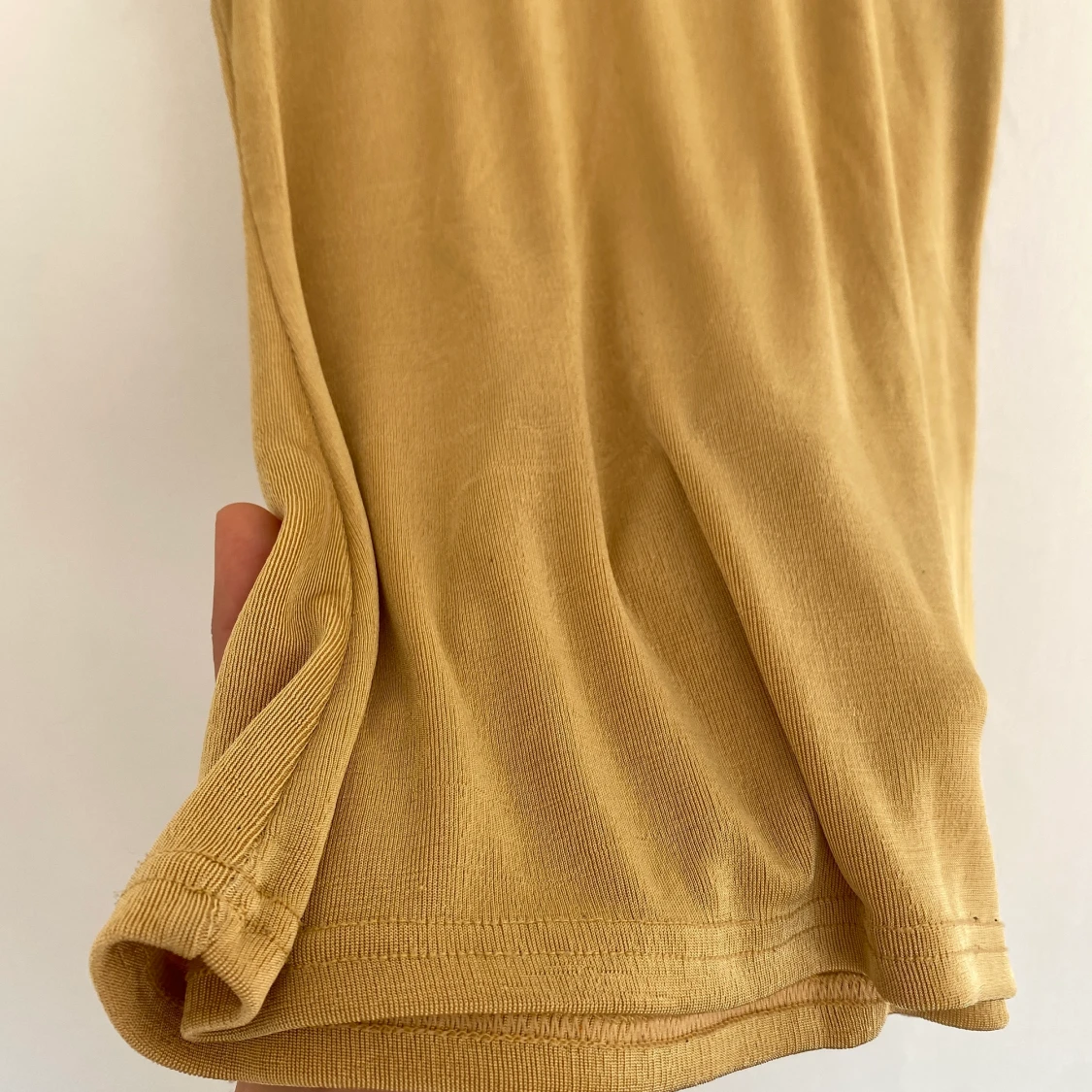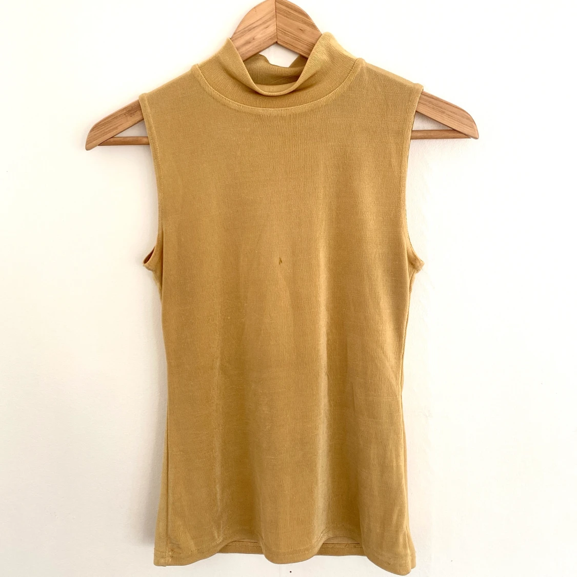 Guldig polo i jätteskönt tyg! Har fått ett pyttelitet brännmärke eller liknande, som ser mörkare ut på bild iom glansen från tyget.🐱