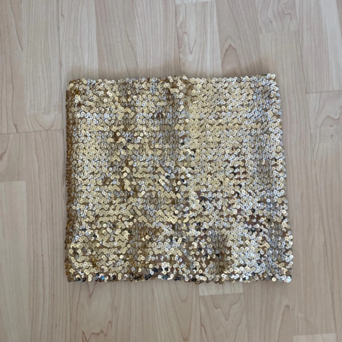 Glittrig tubtopp i guld med massor av paljetter som fångar ljuset. Perfekt för dig som vill sticka ut och glänsa. Axelbandslös bandeau-modell som sitter snyggt och bekvämt.