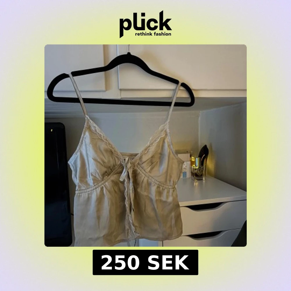 Säljer ett stilrent guldigt linne från NA-KD med spetsdetaljer och knytning framtill. Perfekt för varma dagar eller som ett lager under en kofta tex.