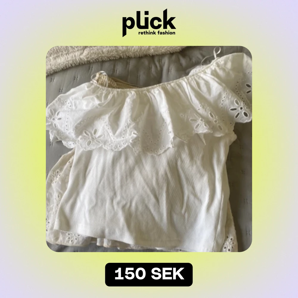 One-shoulder topp från zara med volang, aldrig använd. Storlek 11-12 år man sitter om en xs❤️❤️❤️