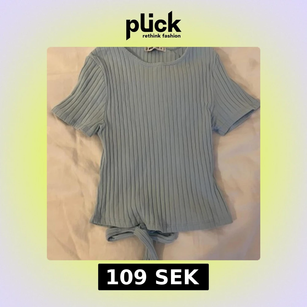 Jättesöt topp med knytning i ryggen från New Yorker i en fin blå färg. Den är i skönt ribbat material men har två små fläckar framtill, men skulle inte säga att de syns speciellt mycket!