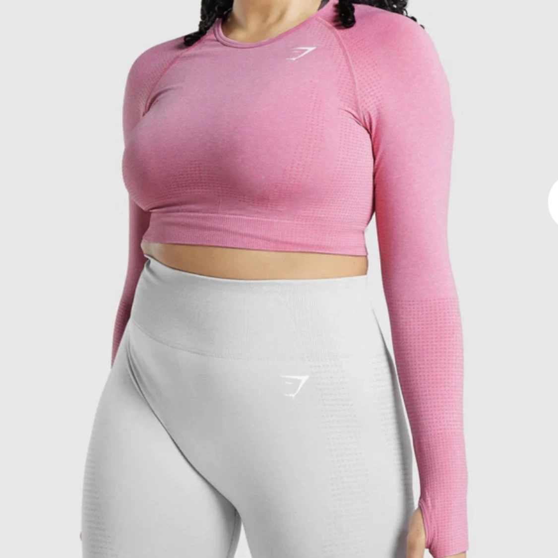 Gymshark vital seamless 2.0 long sleeve crop top i färgen pink marl. Fint skick, knappt använd. 🌸