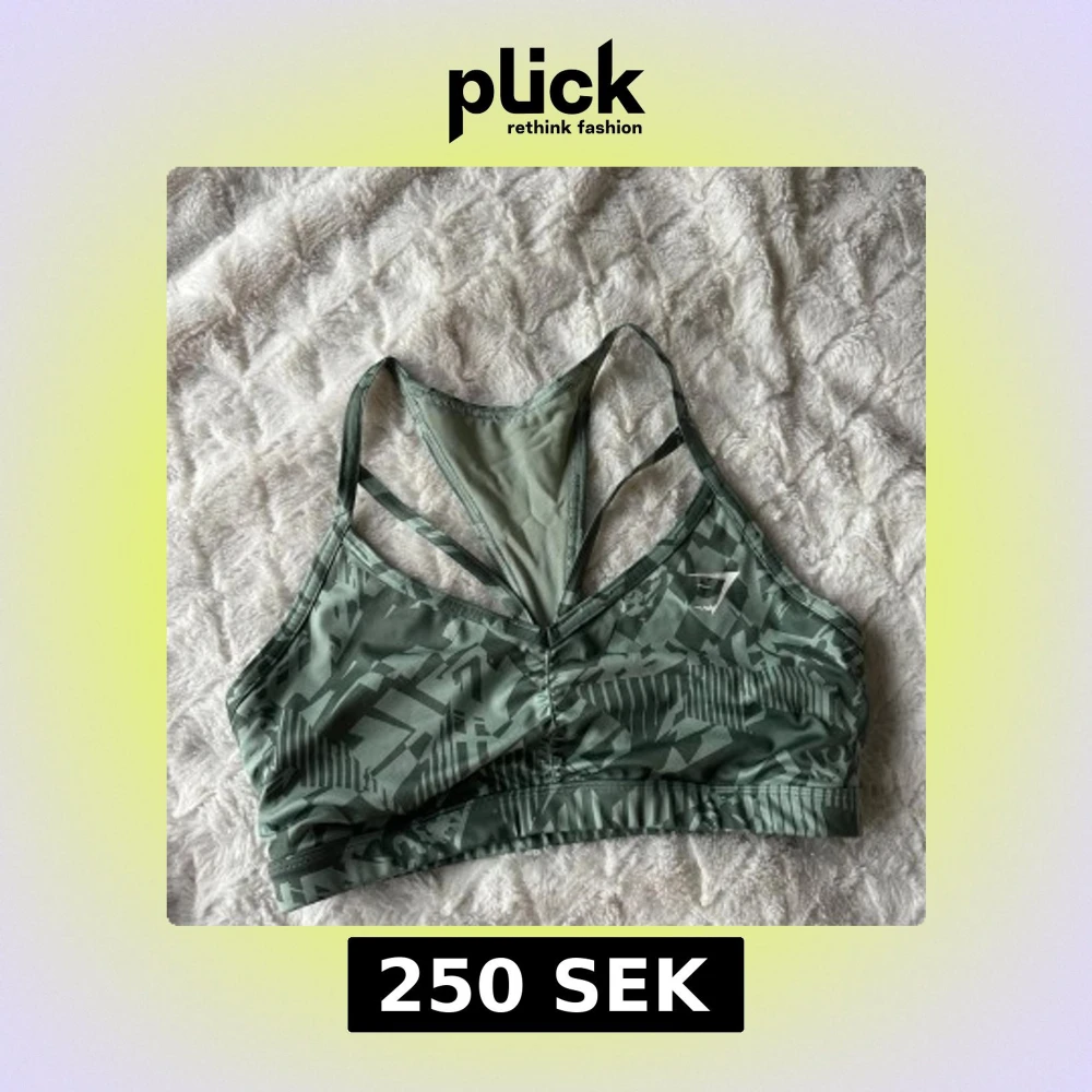 Snygg grön sport-bh från Gymshark med ett coolt kamouflagemönster. Storlek M.