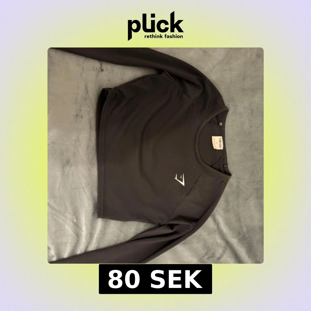 Säljer en svart långärmad topp från Gymshark. Den har en liten logga på bröstet och är perfekt för träning. Toppen är croppad och har en tight passform.