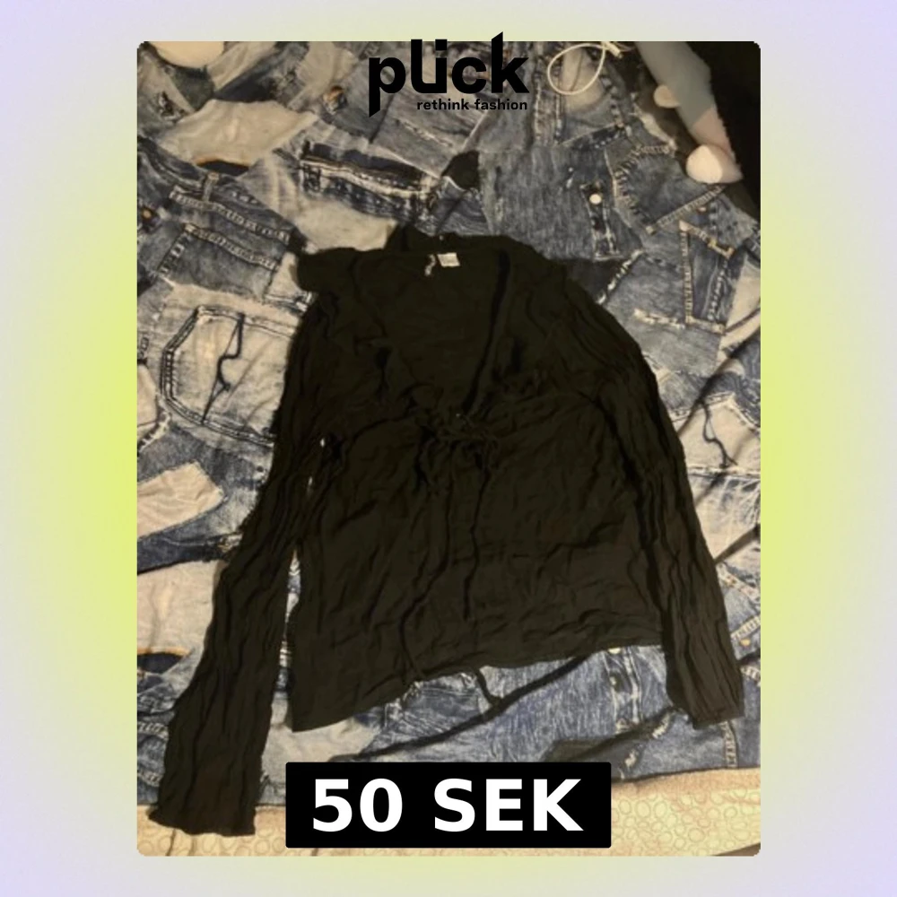 Svart boleroblus från H&M i storlek 32. Tunn och lätt struktur med långa ärmar och snygg snörning framtill. Toppen har en croppad passform och är tillverkad i mjuk bomull, perfekt för att ge din outfit en cool vibe.