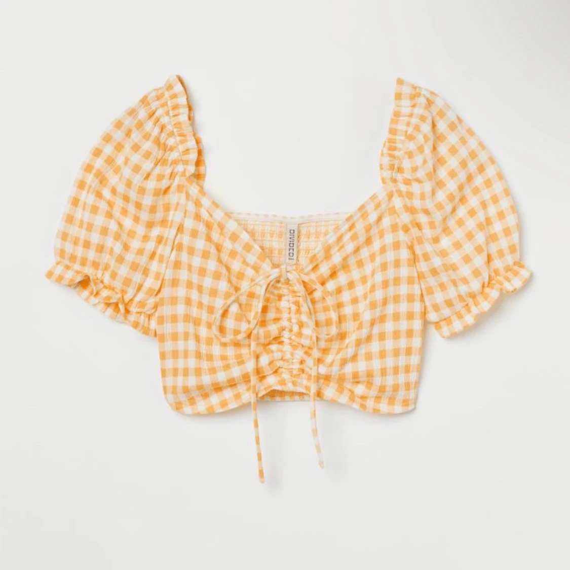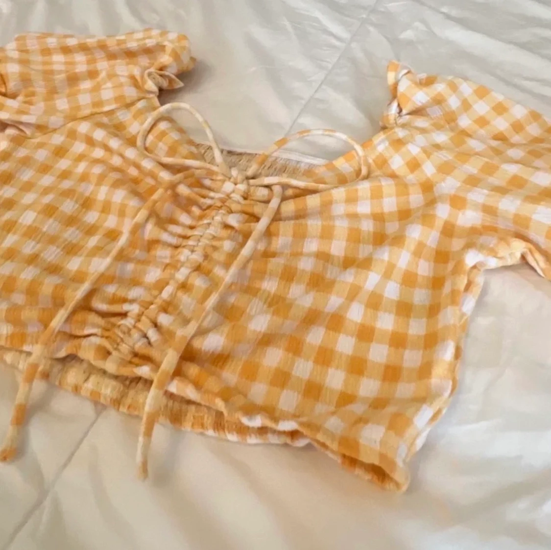 orange rutig cropptopp med snöre, använd 2 gnr🤍