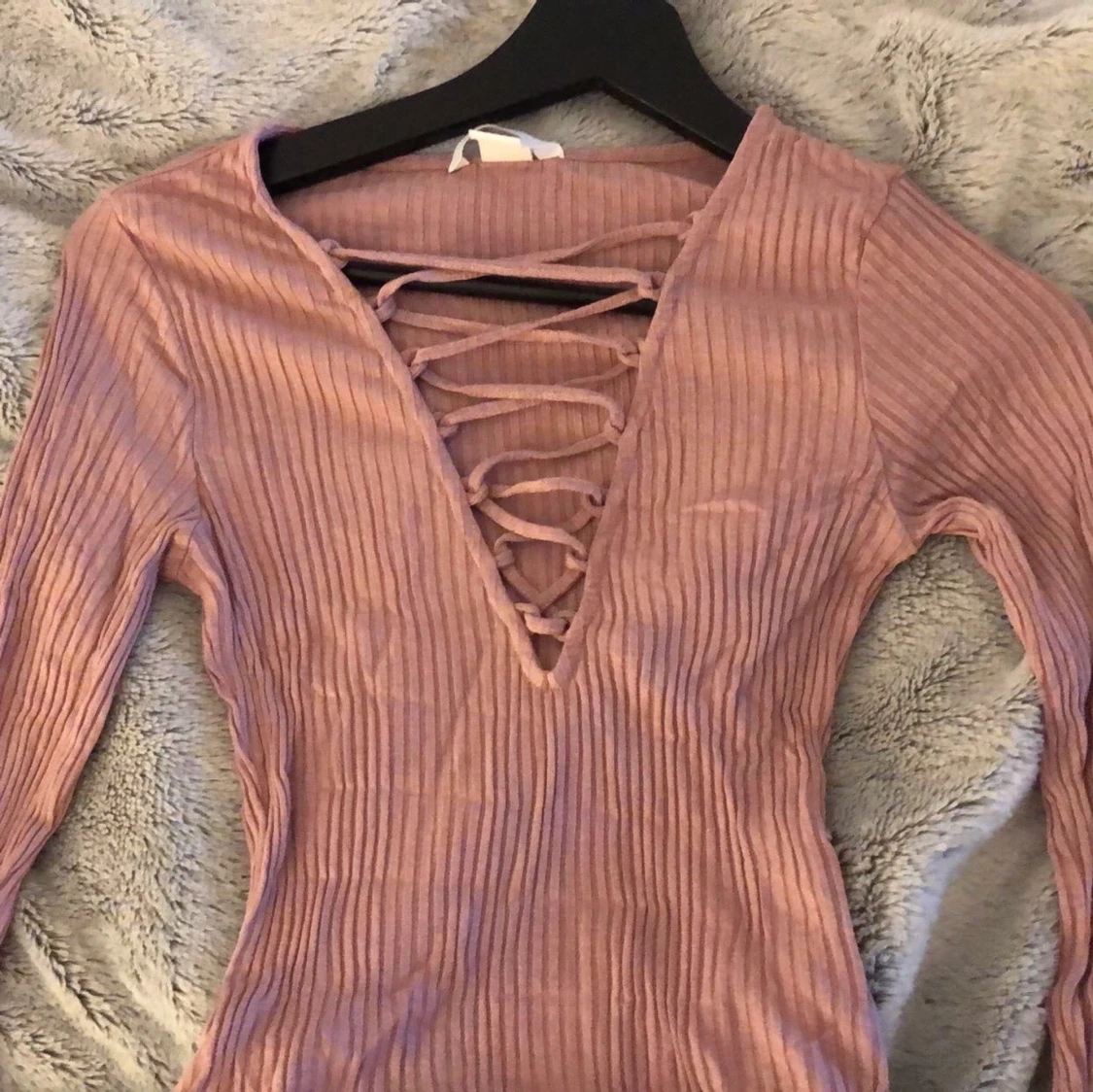 Smutsrosa body med snörning framtill. Storlek XS, men passar större då den är otroligt stretchig. Jätteskönt material.