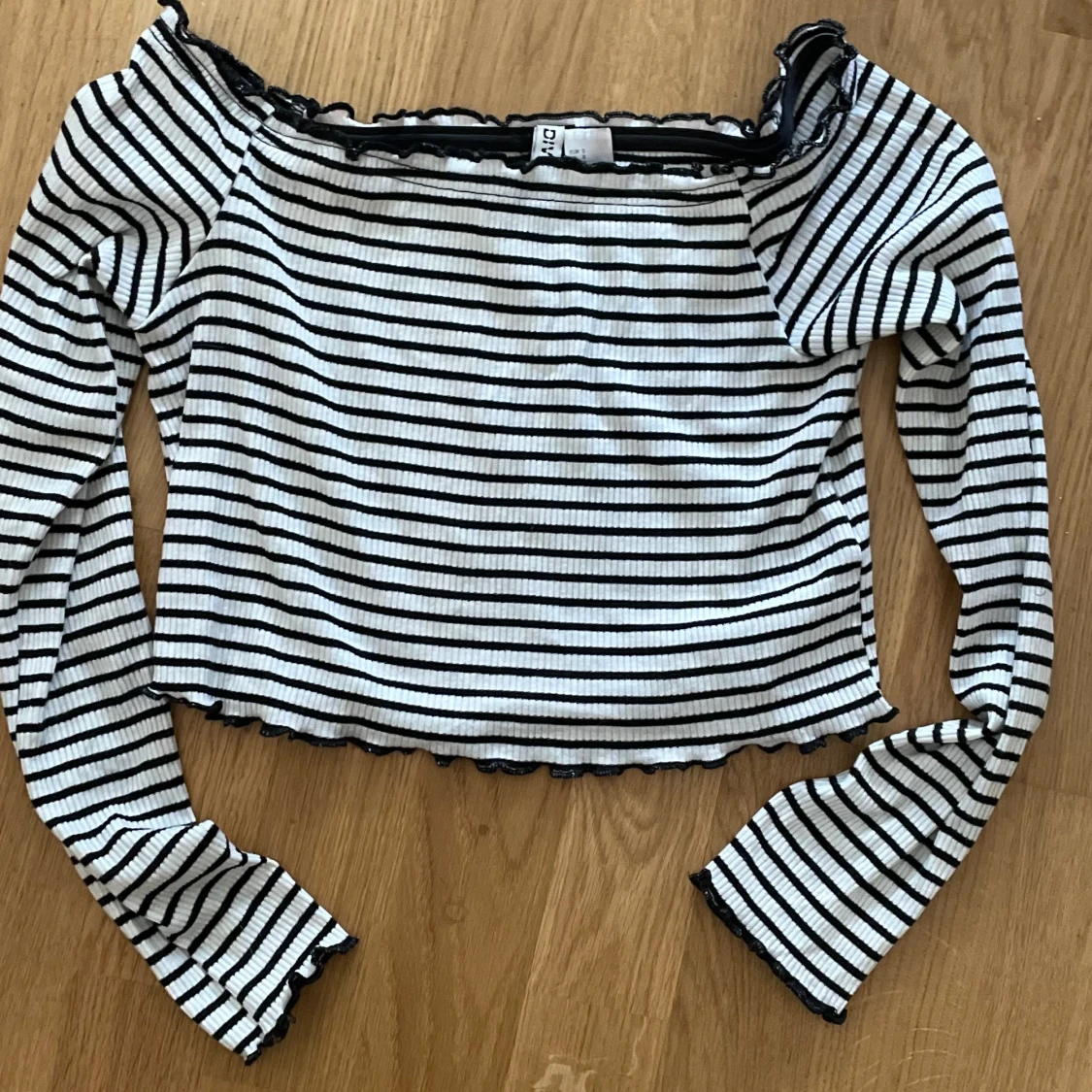 Off shoulder top ifrån H&M med svarta och vita ränder! Endast använd 1 gång. Storlek S