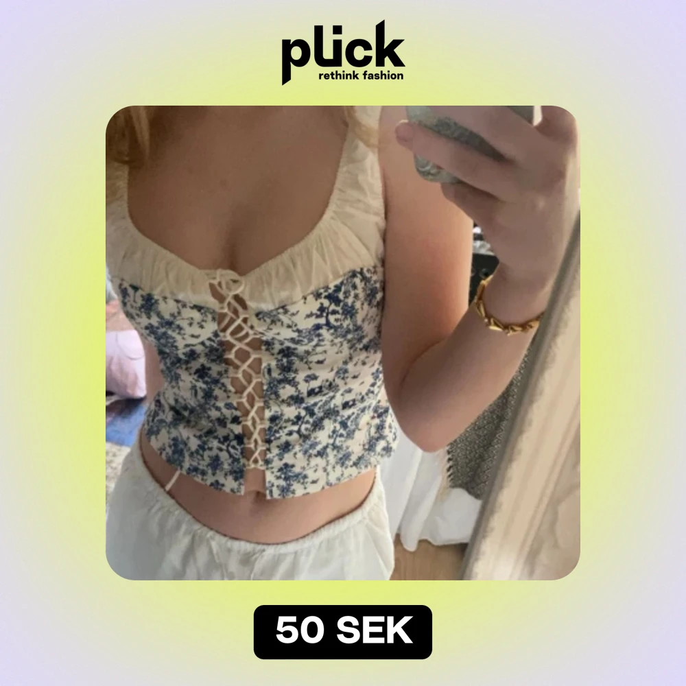 Jätte gullig korsett topp med blått mönster. Utmärkt skick, endast använd 2/3 gånger. Säljer då den inte längre kommer till användning💕