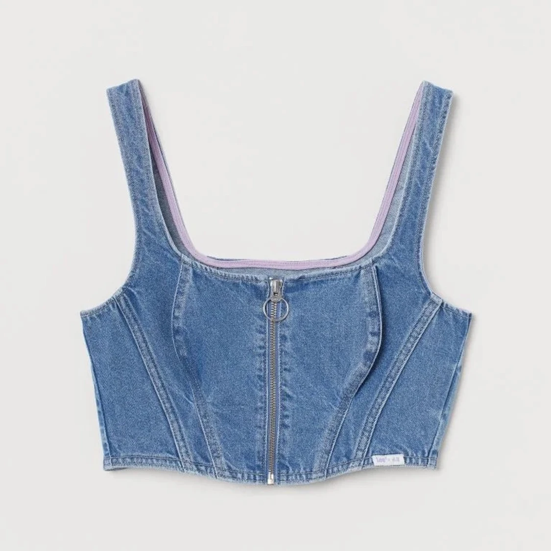 Jeanstopp från hm x Lee kollektionen som inte säljs längre, toppen är aldrig använd och i storlek 38! Lappen kvar! Originalpris 199kr🙏🏼 säljer en vit också vid intresse.