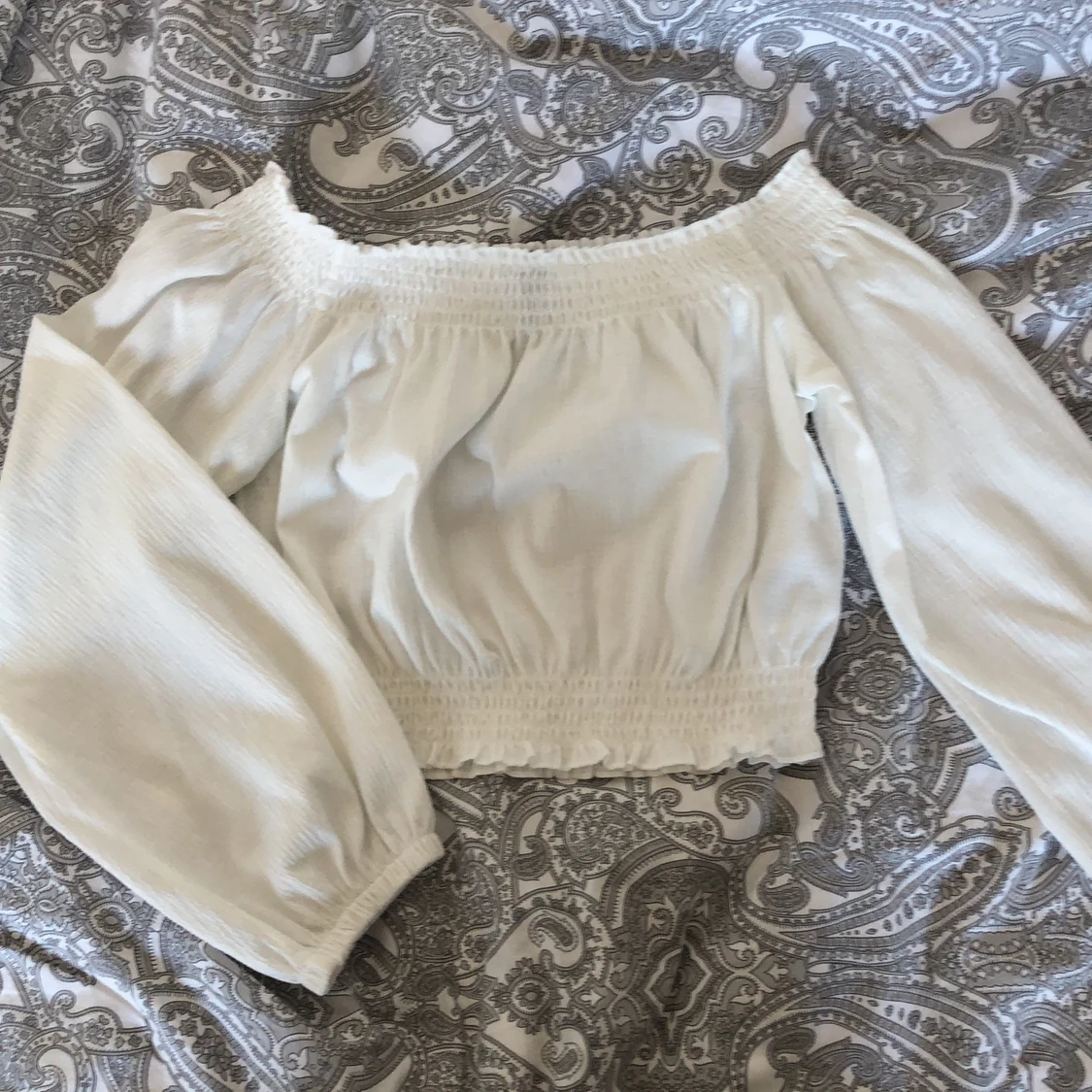 Säljer en offshoulder-croptop tröja från H&M i storlek S. Jag har inte använt den mer än 3 gånger, den är så gott som nyskick:) Pris kan såklart diskuteras:) Möts upp i Malmö eller så står köparen för frakten:)