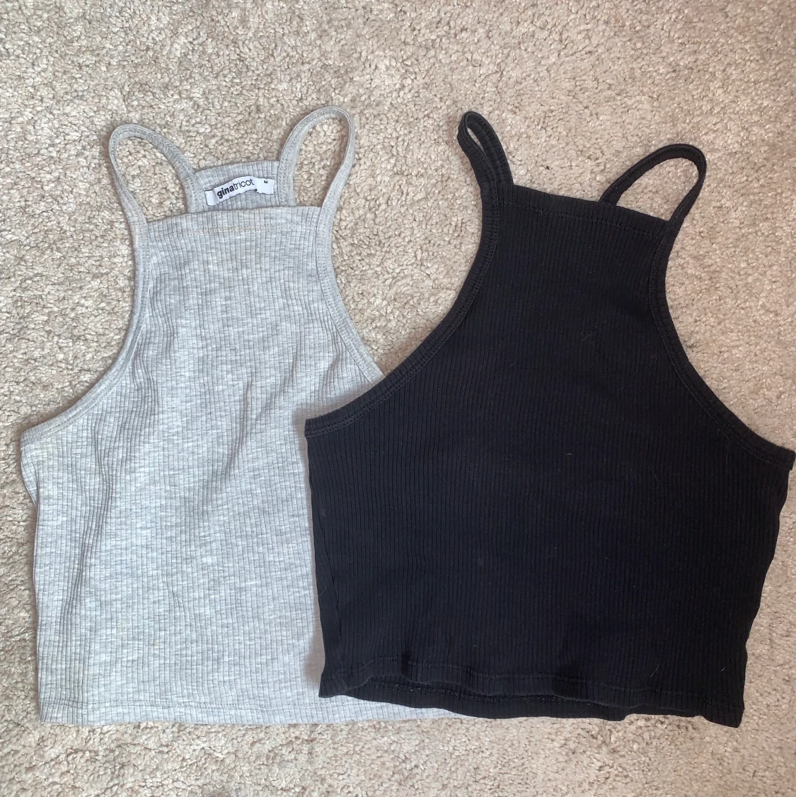 Grå och svart topp som är smalare upptill. Passar både S och M och är väldigt lätta och sköna att ha till allt. Nyskick, använda fåtal gånger. Båda ingår i priset