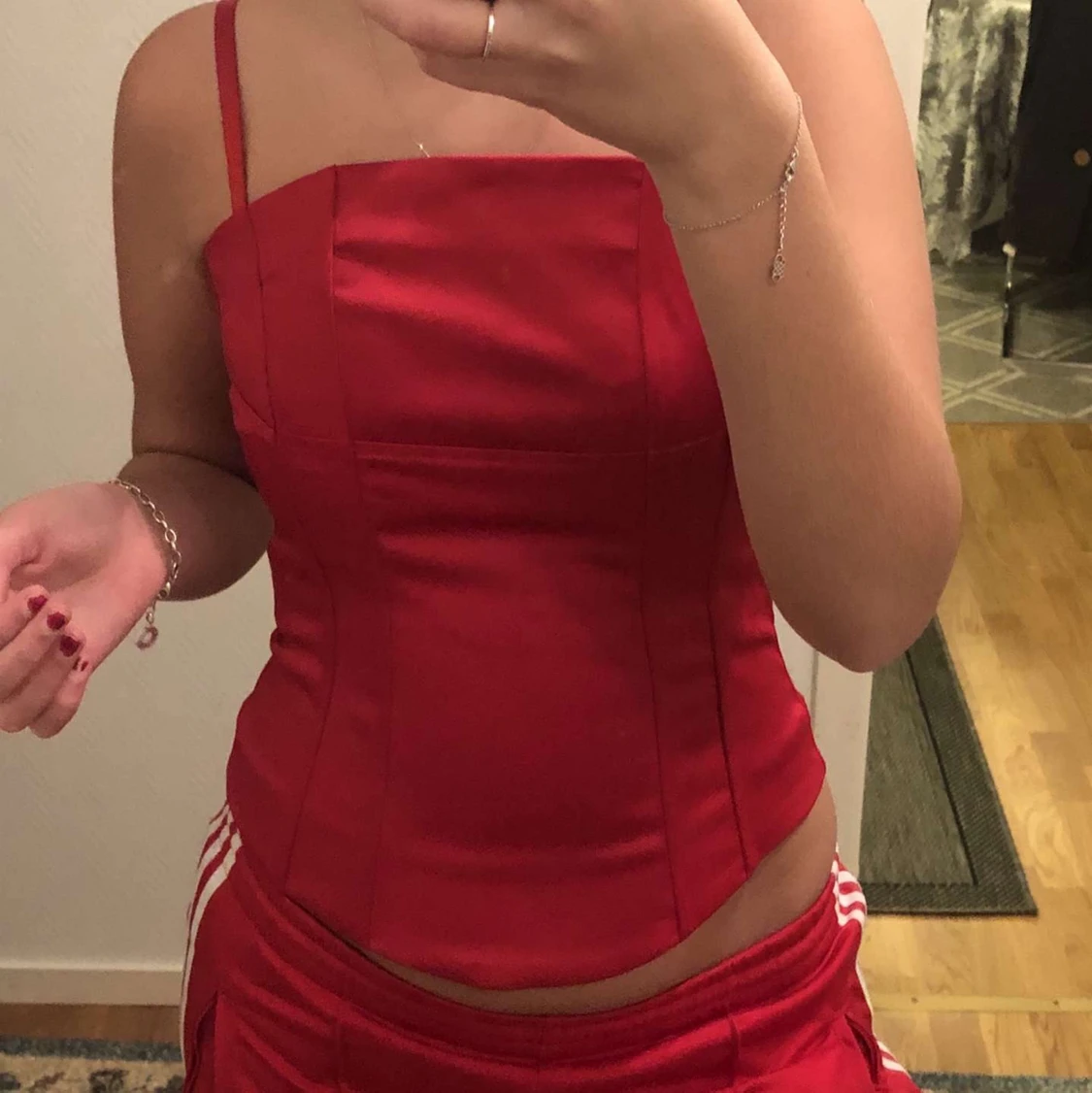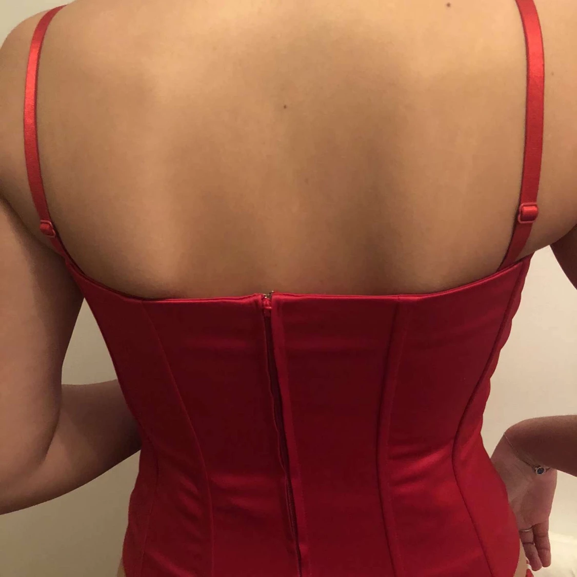 Lite av en blanding mellan korsetttop och vanlig topp. Väldigt fin topp i röd färg med superfint material. Passar till utekväll eller bara en middag. Säljes pga den inte kommer till användning:(
