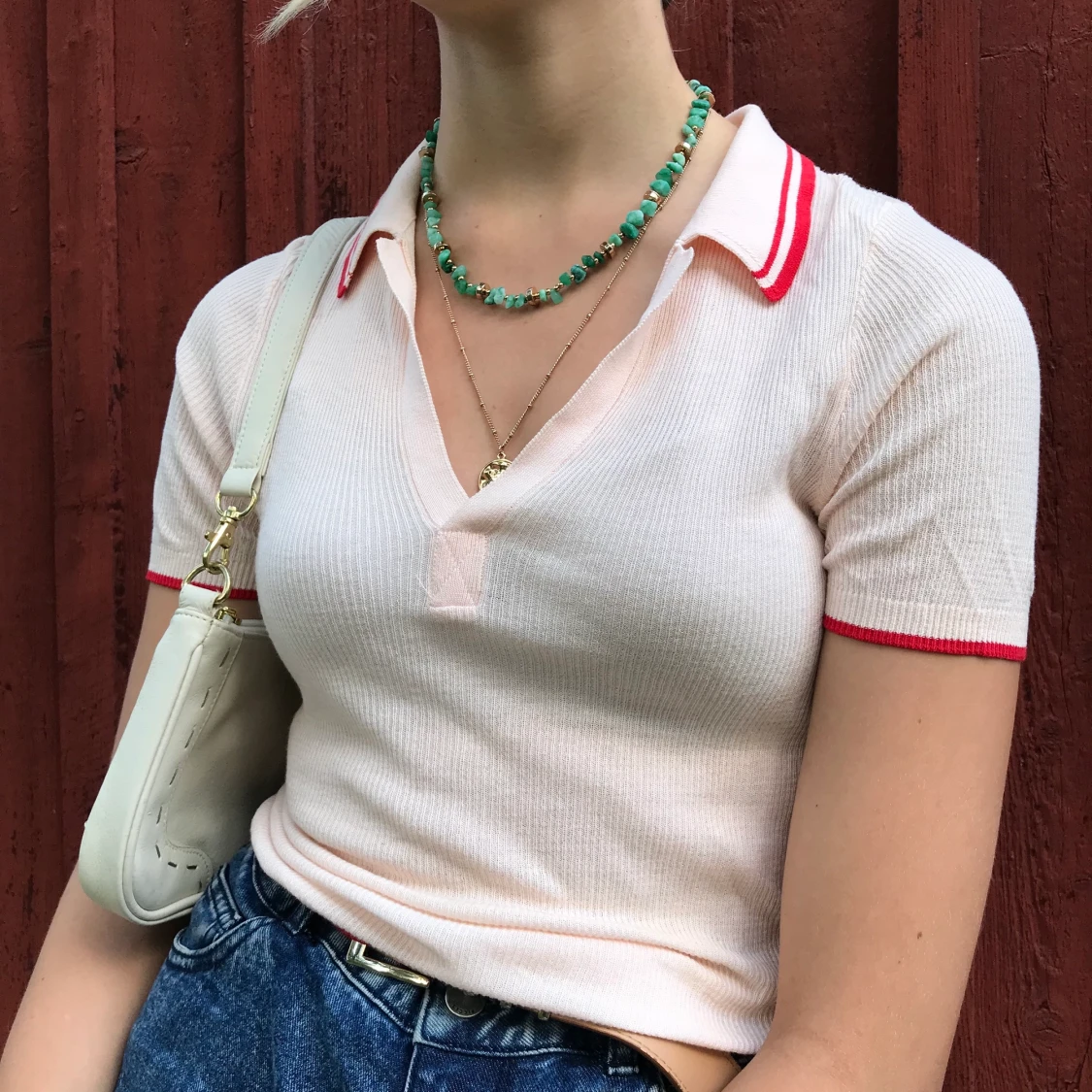 H&M ribbad topp. Rosa & röd i fin stick. Frakt tillkommer