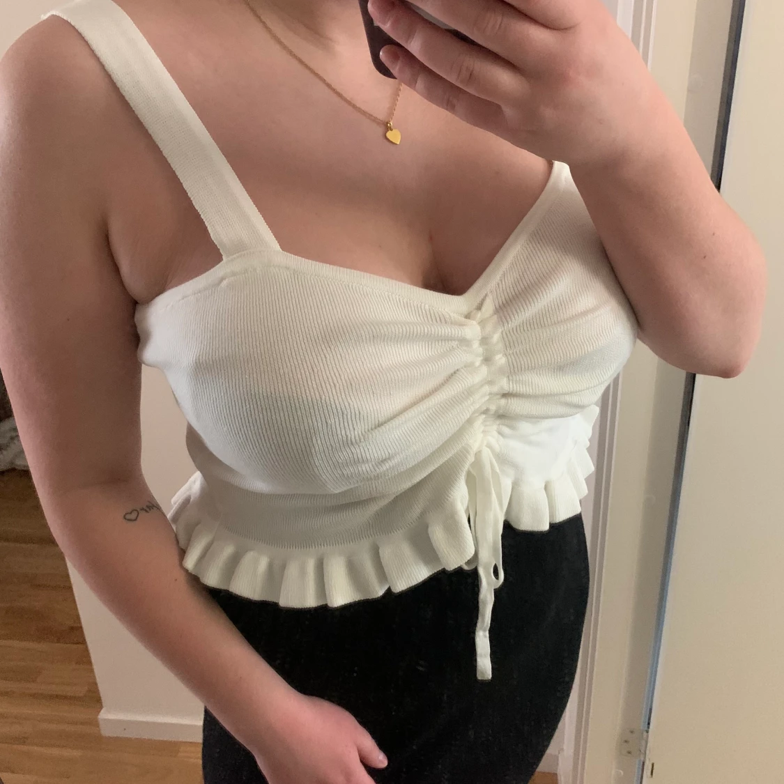 Vitt stickat linne från H&M i storlek L. Väldigt stretchigt material så passar även de i XL. Finns en dragsko i mitten så man kan justera så som man vill ha det. Linnet är aldrig använt, bara testat.