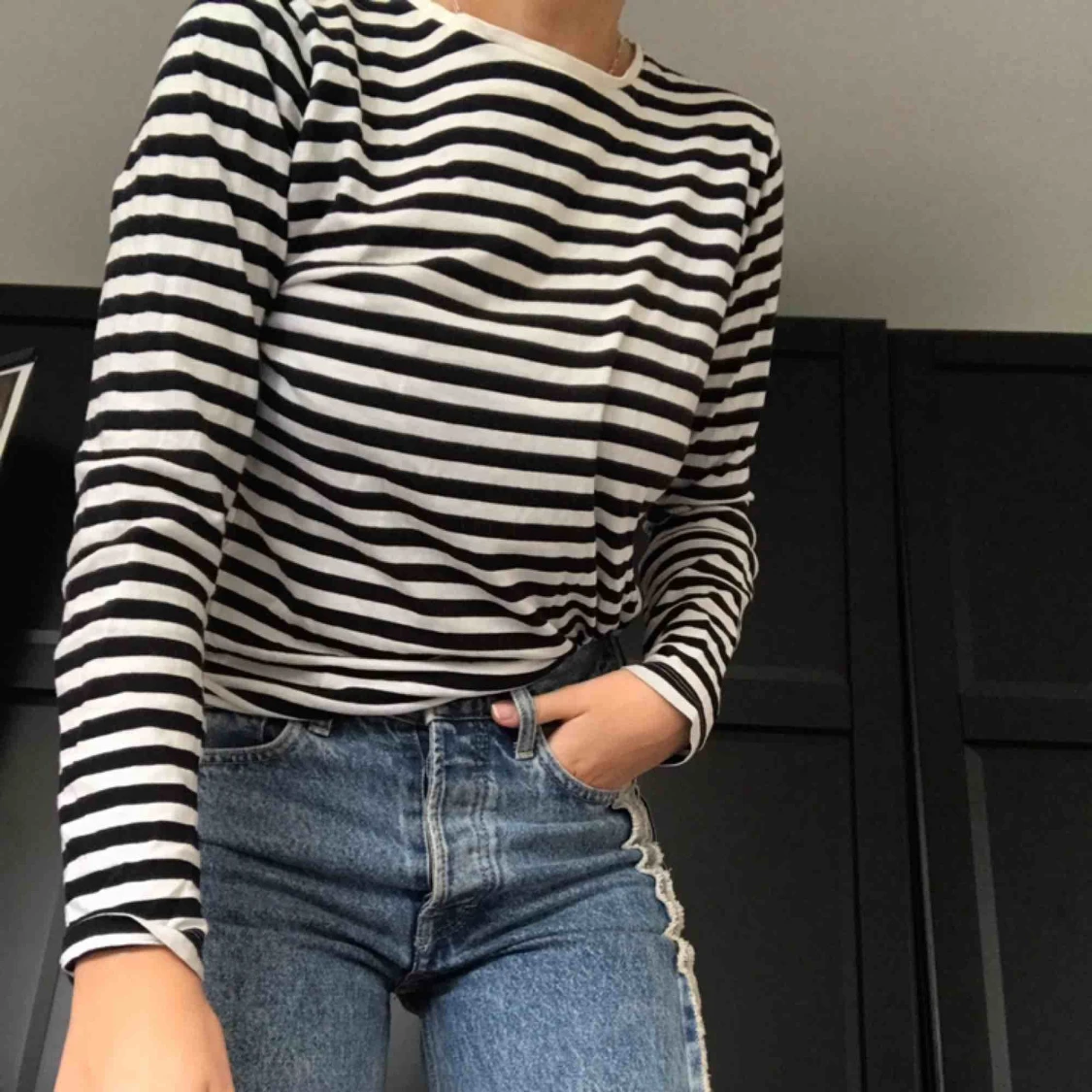 Klassisk svart och vit randig långärmad!🖤 bomull