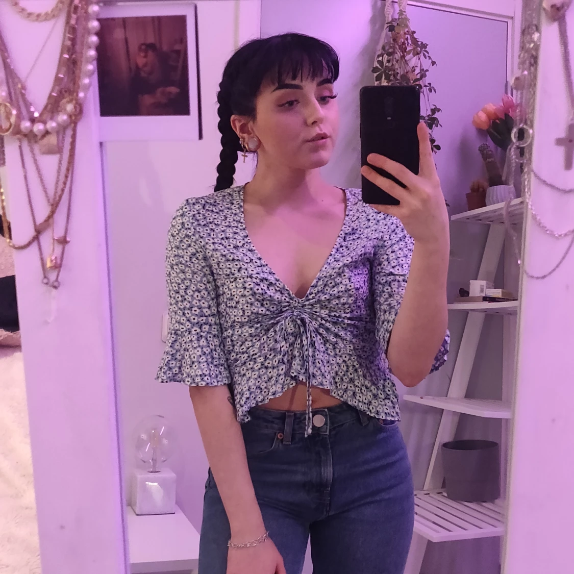 Blommig ljusblå topp från HM, använd få gånger så den är i gott skick! Frakt tillkommer!