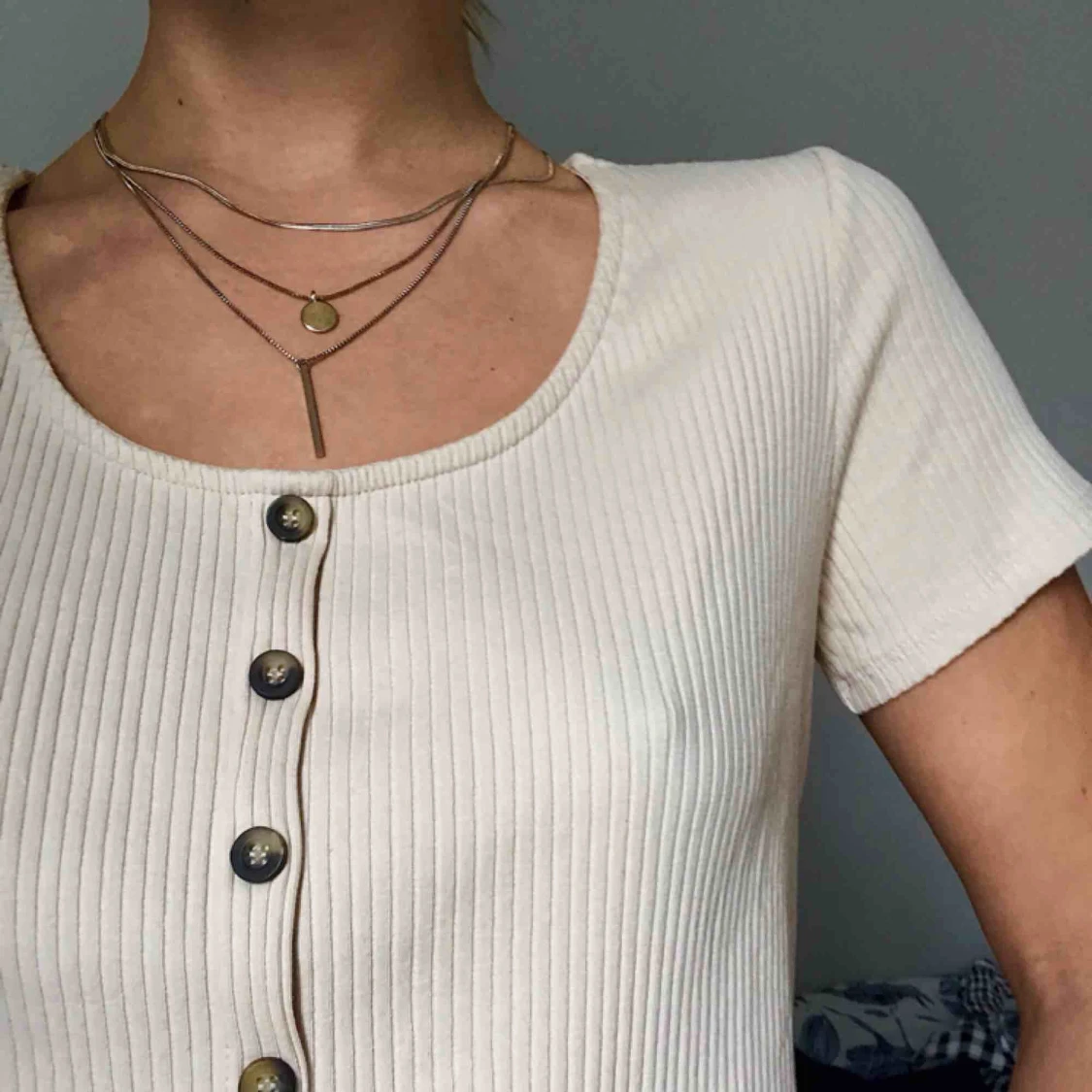 Beige tröja jag köpte precis innan sommaren. Simpel & söt. Trämönstrade knappar!