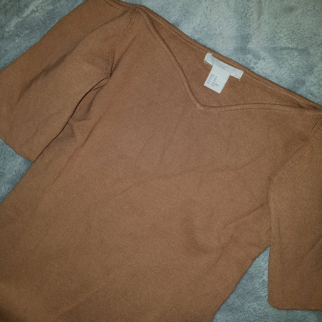 H&M Camel Off The Shoulder Sweater. Topp, Skick: Som ny, använt 1 gång. (+ 36kr frakt). * *Short sleeves. Fitted. Size XS. Measured across: shoulder to shoulder 14in, armpit to armpit 13in, waist 11.5in, sleeve 7.5in, length 20in* Sista bilden är lånad men så ni ser bättre hur toppen ser ut. Den är tjockare i tyget, påminner om bandage tyg. Perfekt till hösten/vintern.